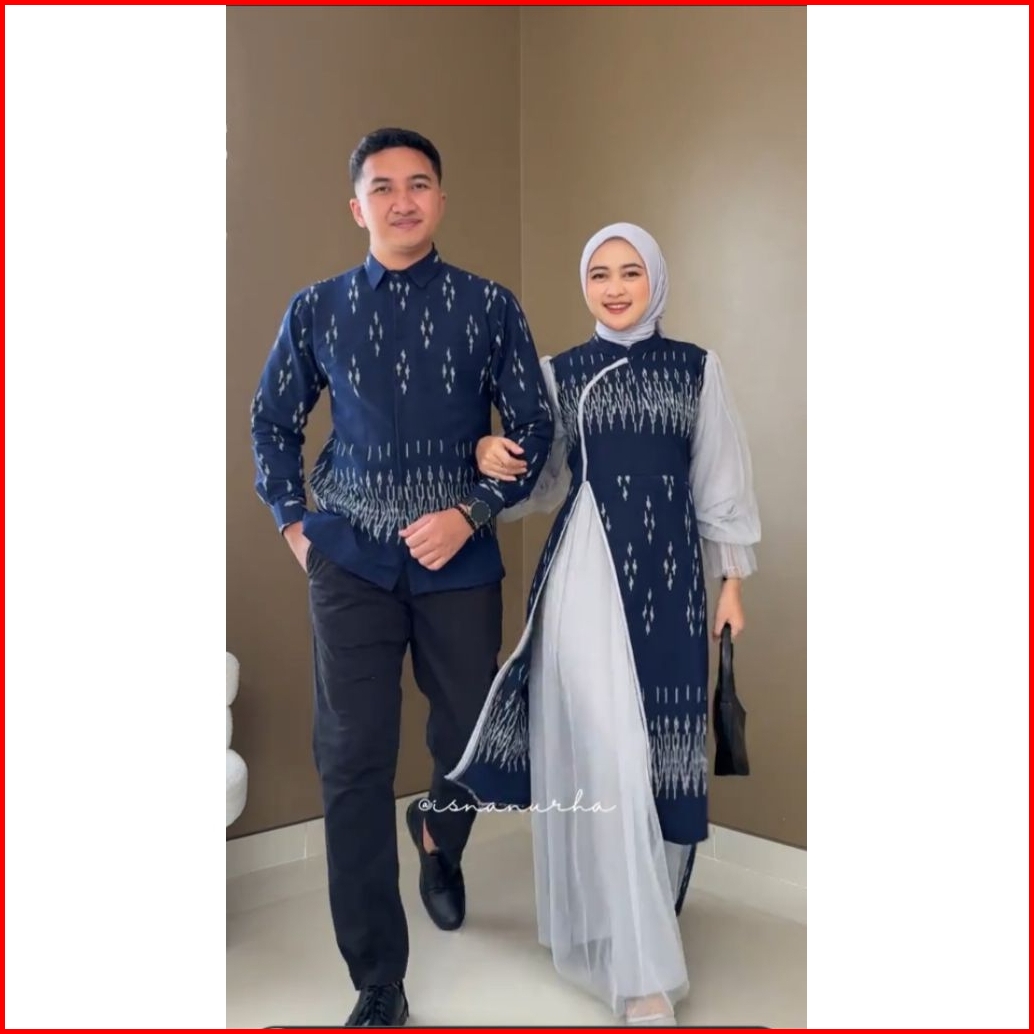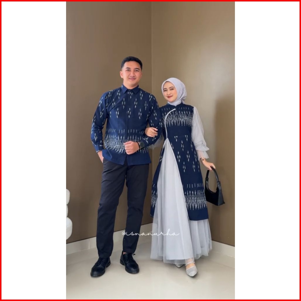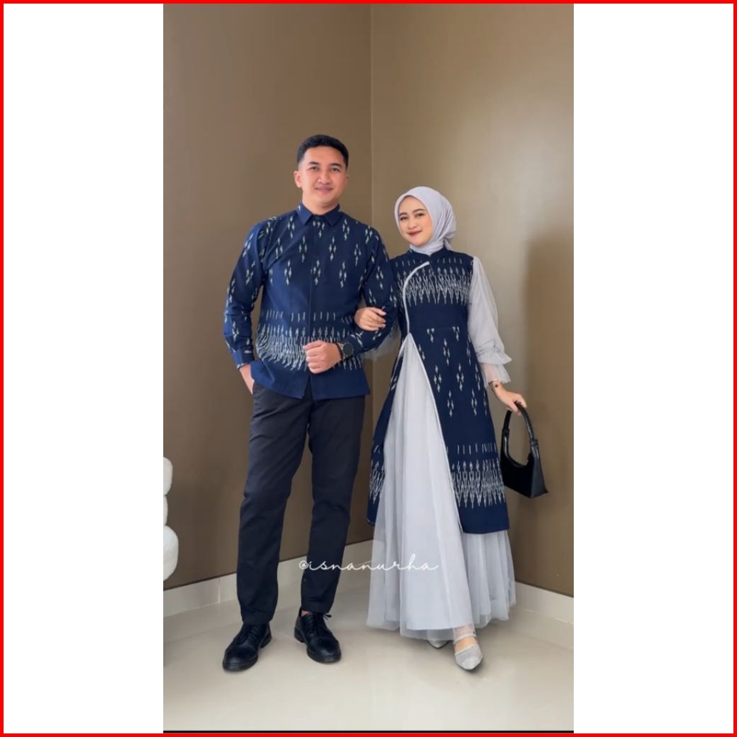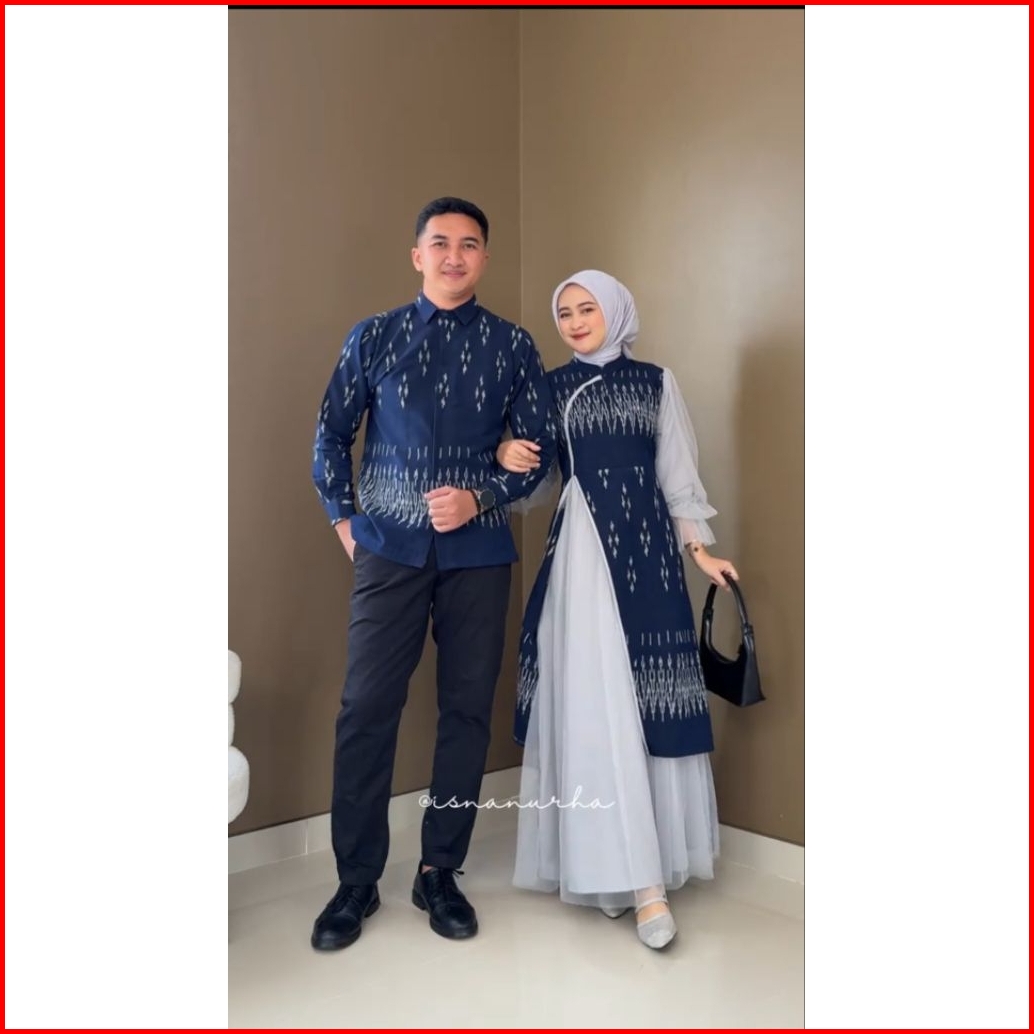 Ready Stock Gamis Hana Warna Navy Titik Couple Tenun Kondangan Maternity Photoshot Gamis Viral Trend Fashion Terbaru Kek