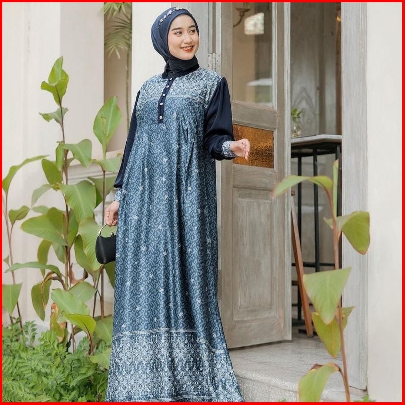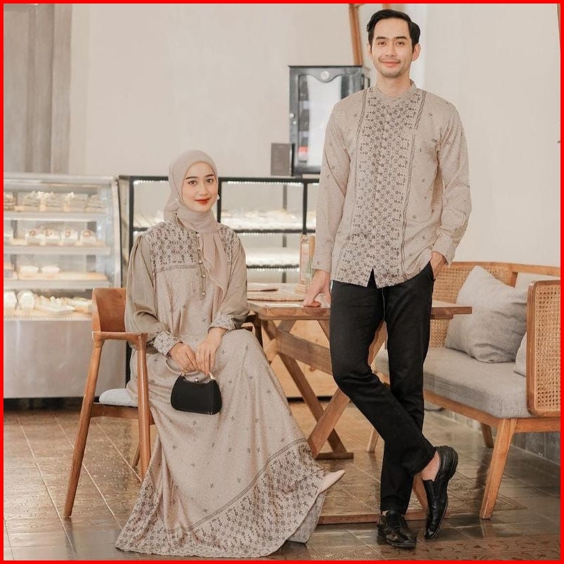 Baju Couple Kemeja Gamis Vantae Navy Sarimbit Premium Termurah