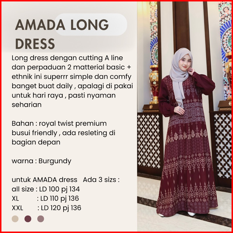 Rereyshop Amada Long Dress Only Mom Sarimbit Ramadhan Dress Couple Nyaman Set Family Keluarga