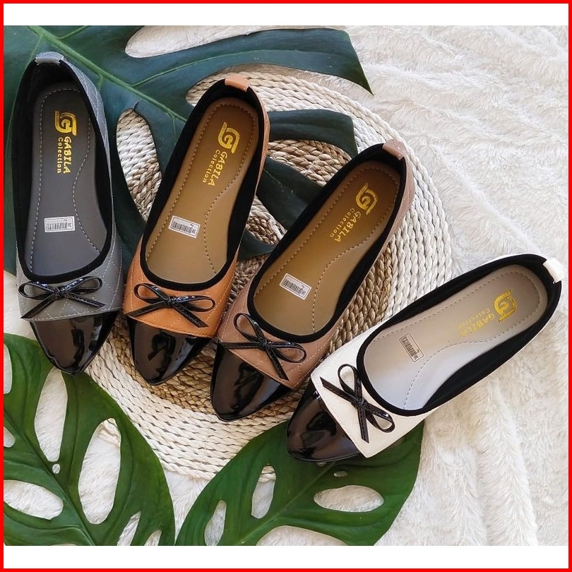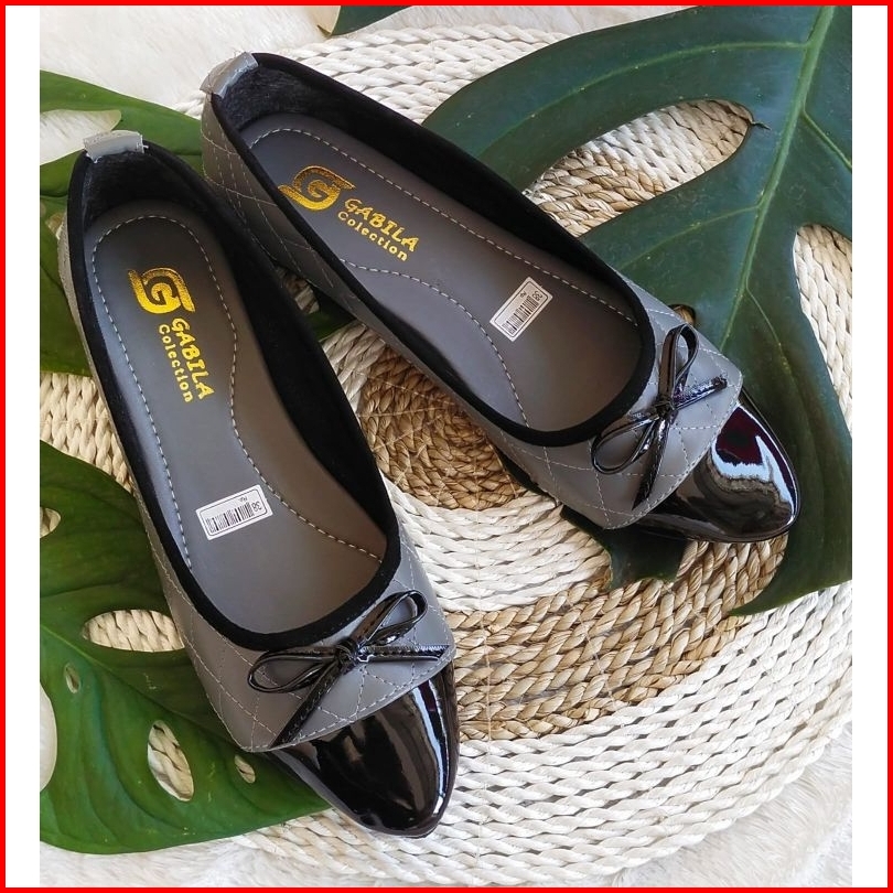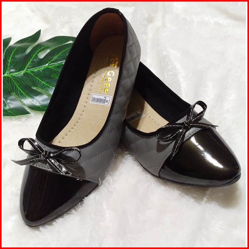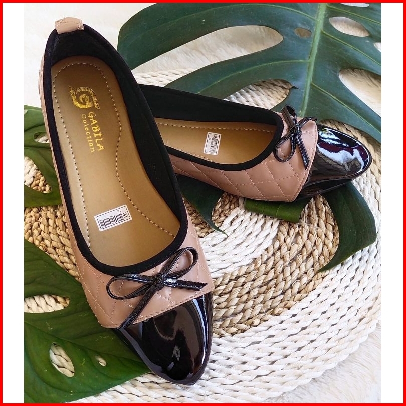 Sepatu Flat Kombinasi Glossy Alas Karet