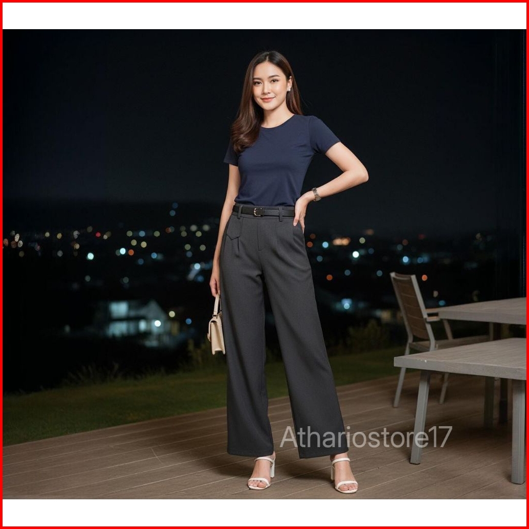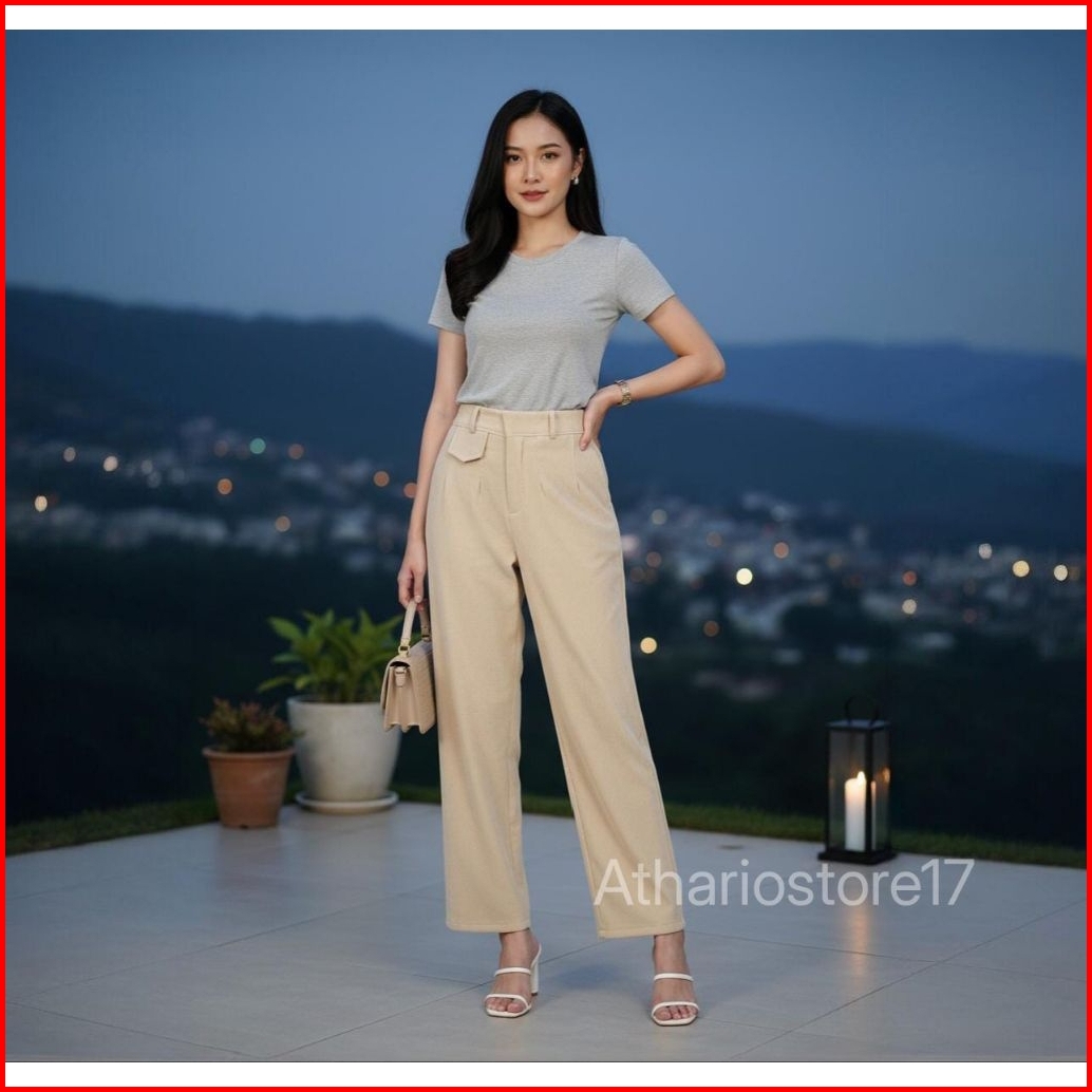 Oro Pants - Celana Kulot Loose Fit Wanita Highwaist Knit Stretch - Korean Style Anti Kusut
