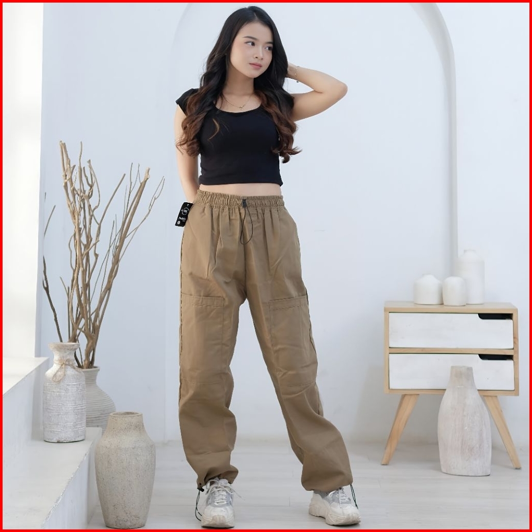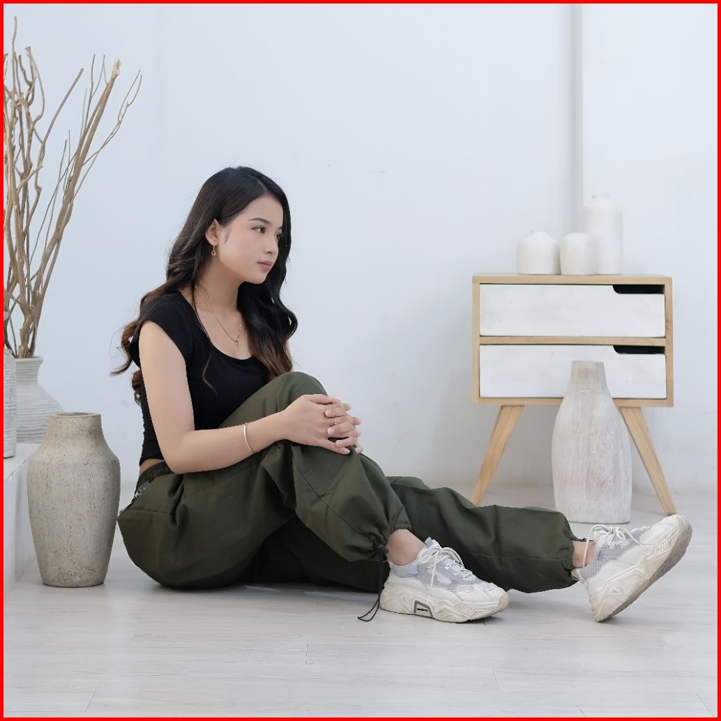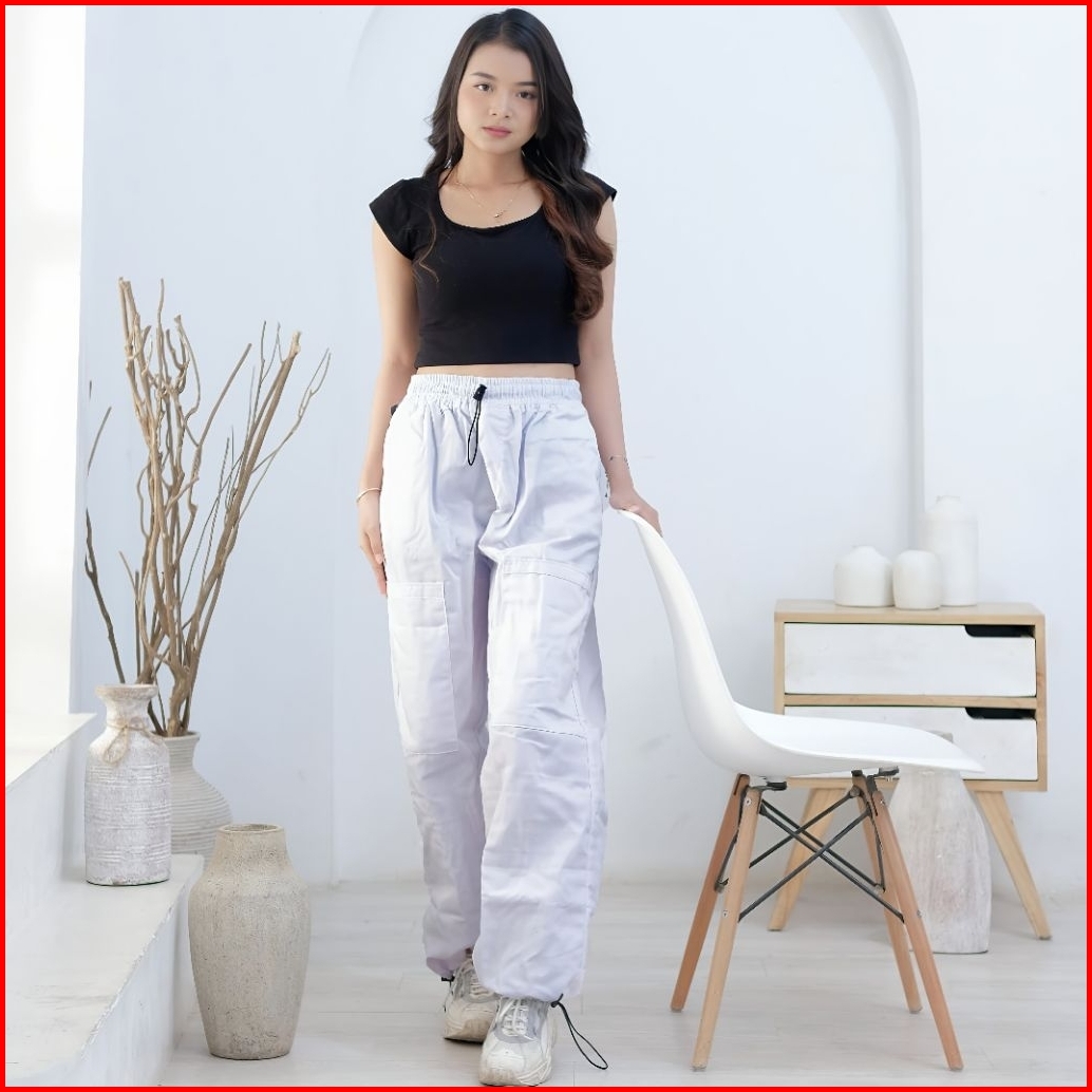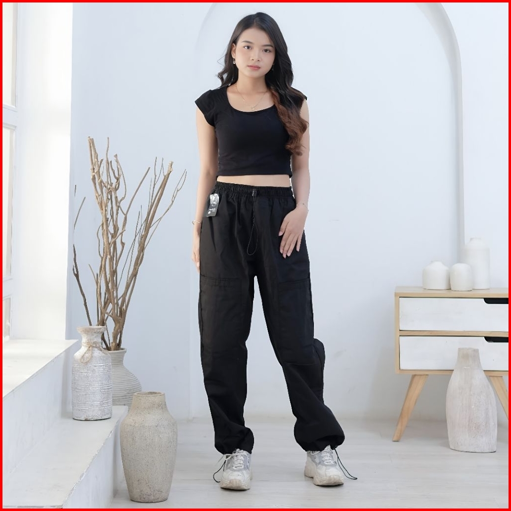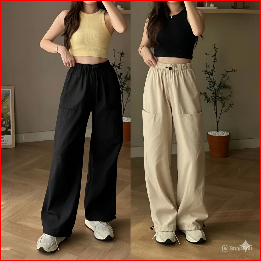 Jane Baggy Loose Pants Highwaist - Celana Panjang Wanita Kulot Joger Tali Serut Korean Style