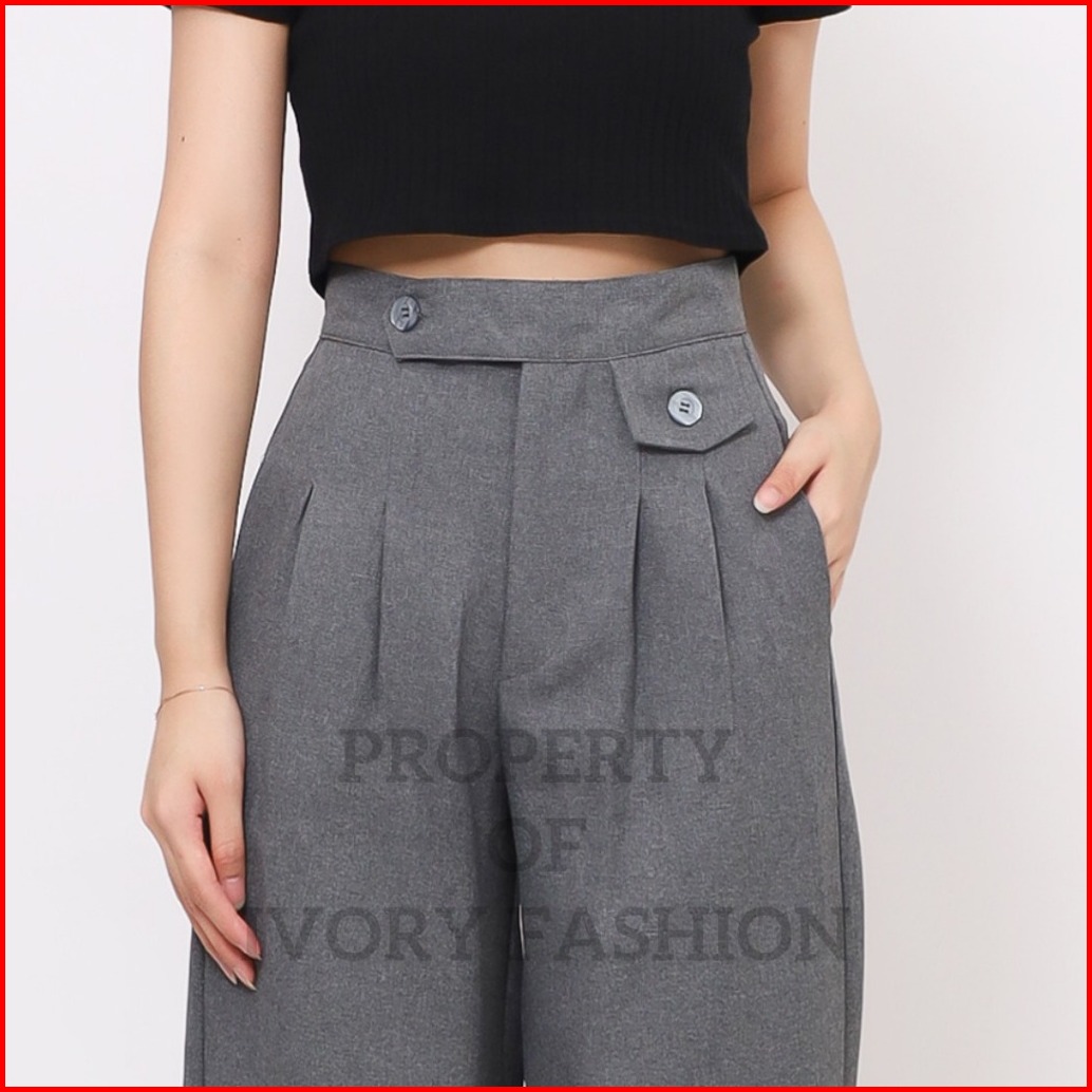 Ivory - Celana Kulot Wanita Panjang Loose Pants Highwaist Celana Wanita Kerja Kantor Formal Kekinian Korean Style