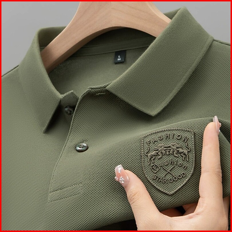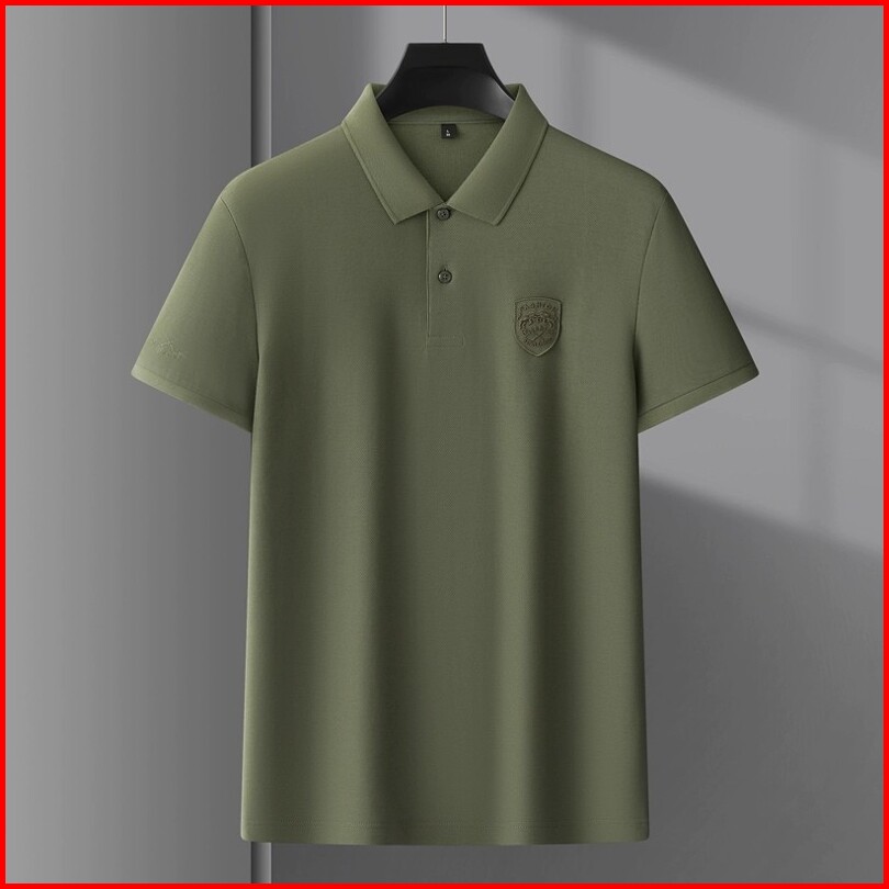 Polo Shirt Pria Hijau Stretch Kemeja Kerah Stand Dewasa Cowok Lengan Pendek Korean Style Nygman Premium Kaos