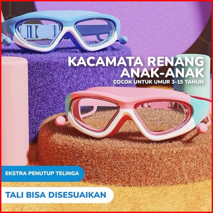 Bbak Kacamata Renang Anak Anti Embun Anti Uv Cocok Untuk Anak Usia 3-15 Tahun Xtra Penutup Telinga Box Kacamata Renang