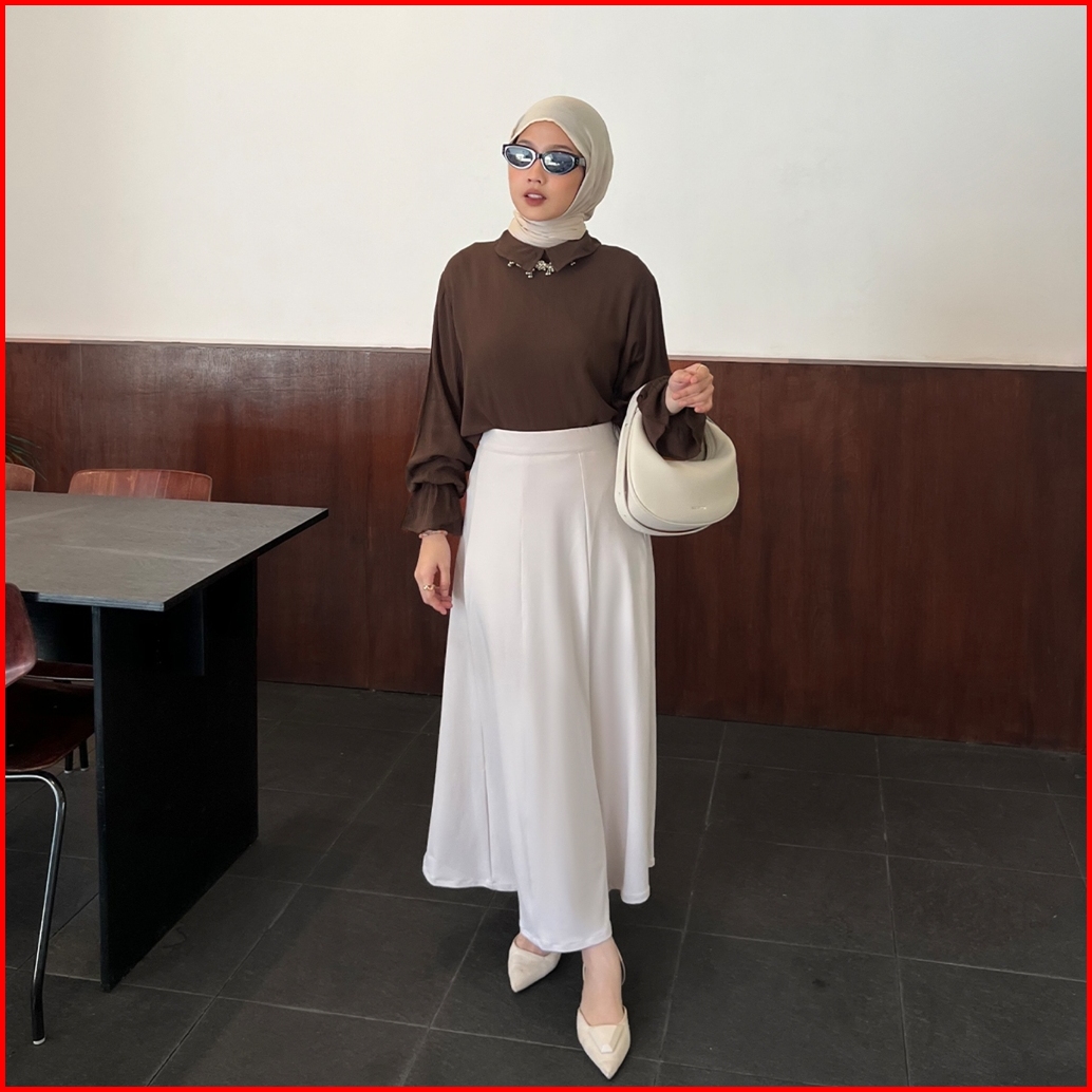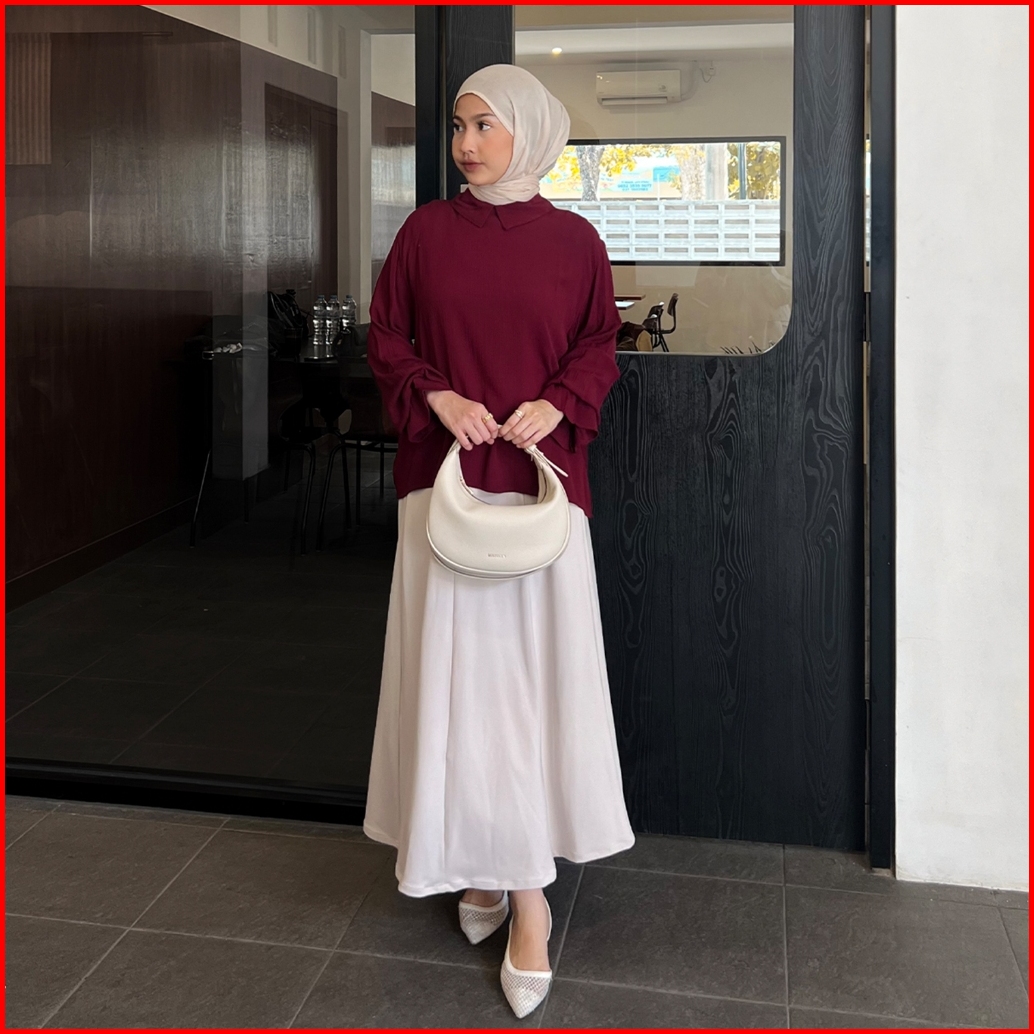 Yeppuoutfit - Nami Blouse Blouse Premium Lucu Kerah Turtleneck Lengan Kerut Karet Simple Comfy
