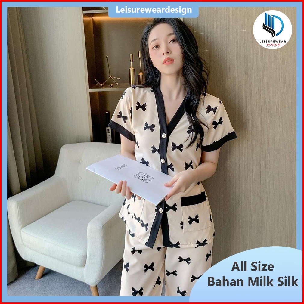 Leisureweardesign Piyama Wanita Kancing Design Pearl Celana Panjang Lengan Pendek Import Best Quality Baju Tidur Piyama