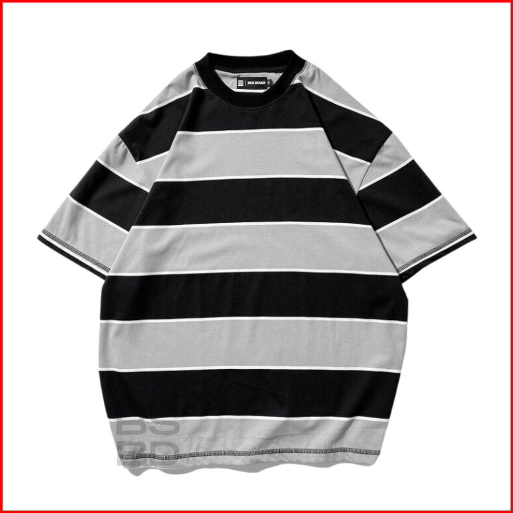 Kaos Stripe Vintage Cotton 24s Salur Distro Pria Wanita Oversized