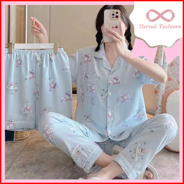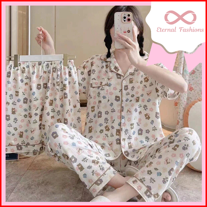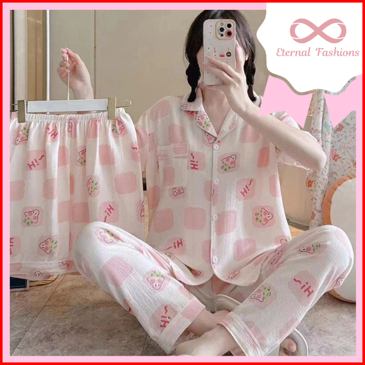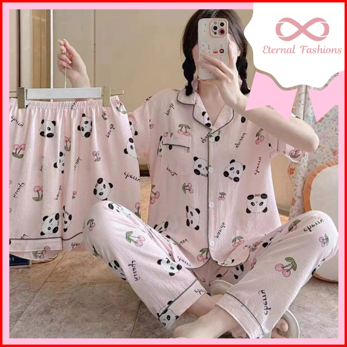 Eternalfashions Baju Tidur Crinkle 3in1 Piyama 2 Celana Crinkle Pajamas Import Bangkok 3in1 Baju Tidur Dua Celana Adem H