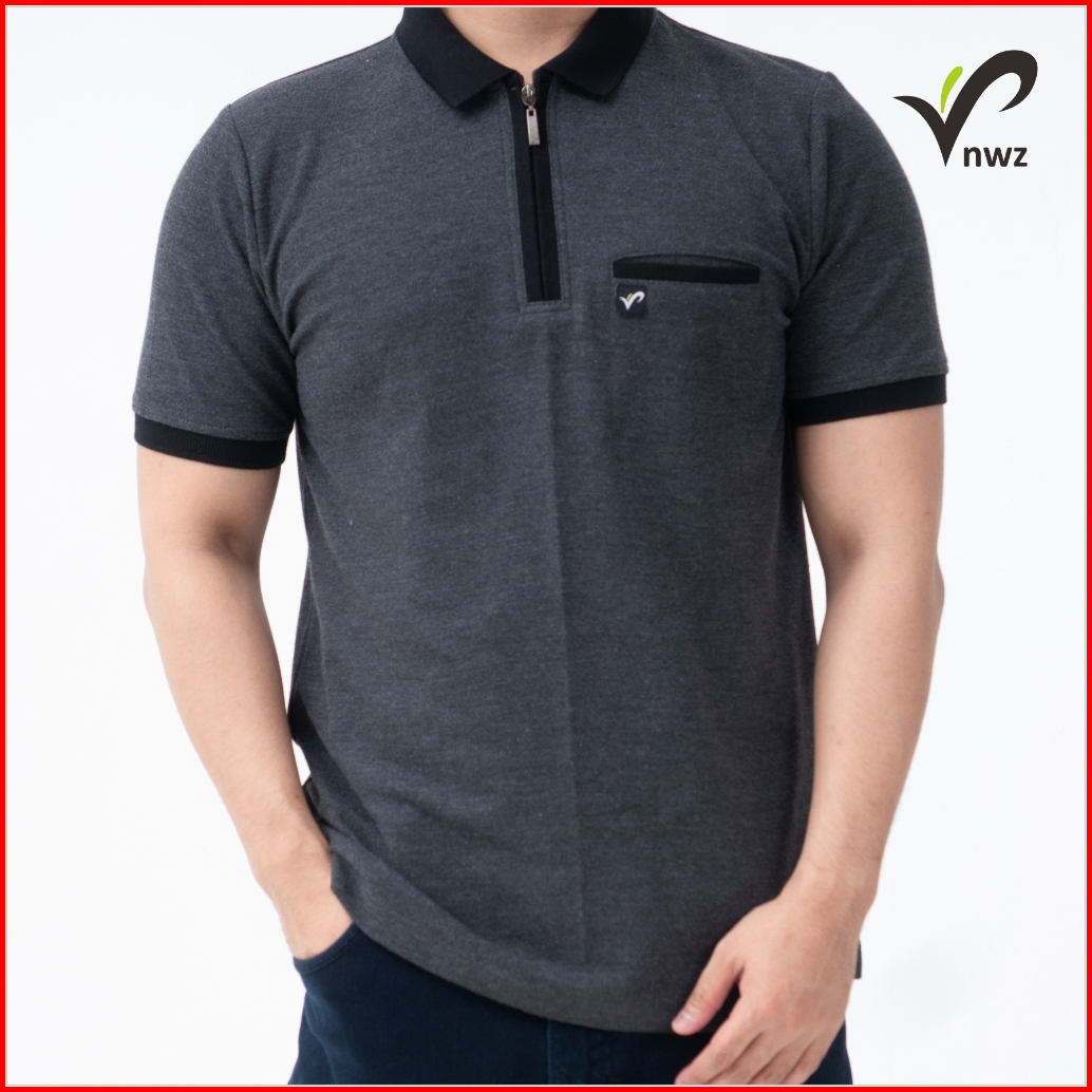 Kaos Polo Kerah Wangki Pria Zipper Saku Big Size Cotton Baju Jumbo Resleting Warna Hitam Abu
