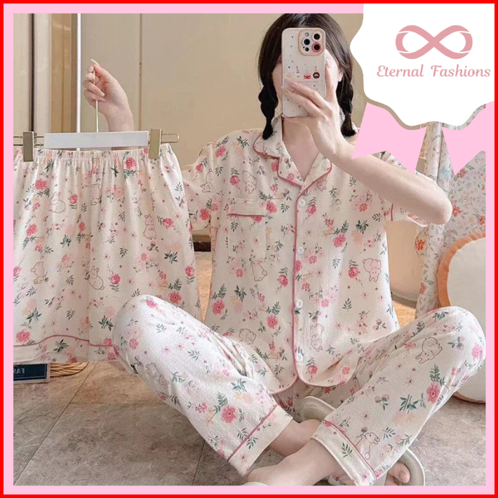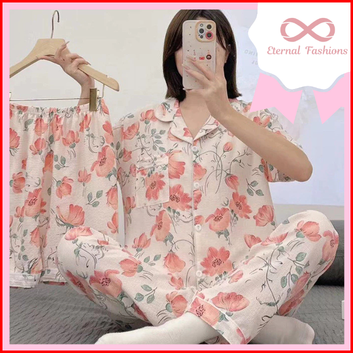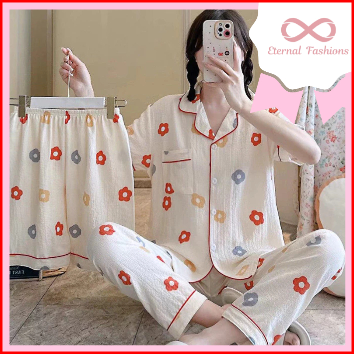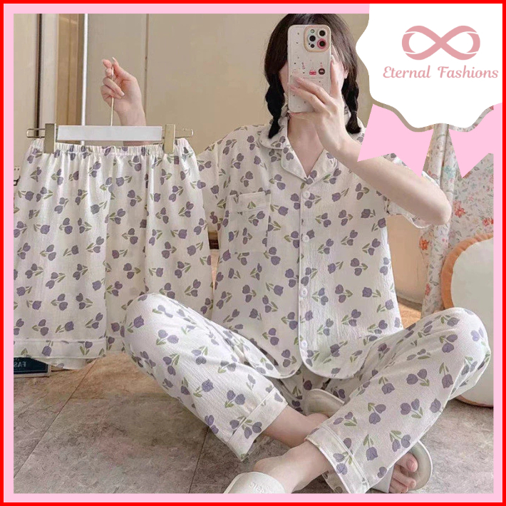 Eternalfashions Baju Tidur Crinkle 3in1 Piyama 2 Celana Crinkle Pajamas Import Bangkok 3in1 Baju Tidur Dua Celana Adem H