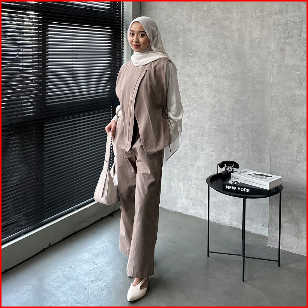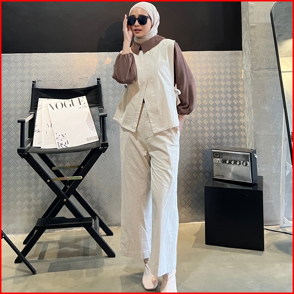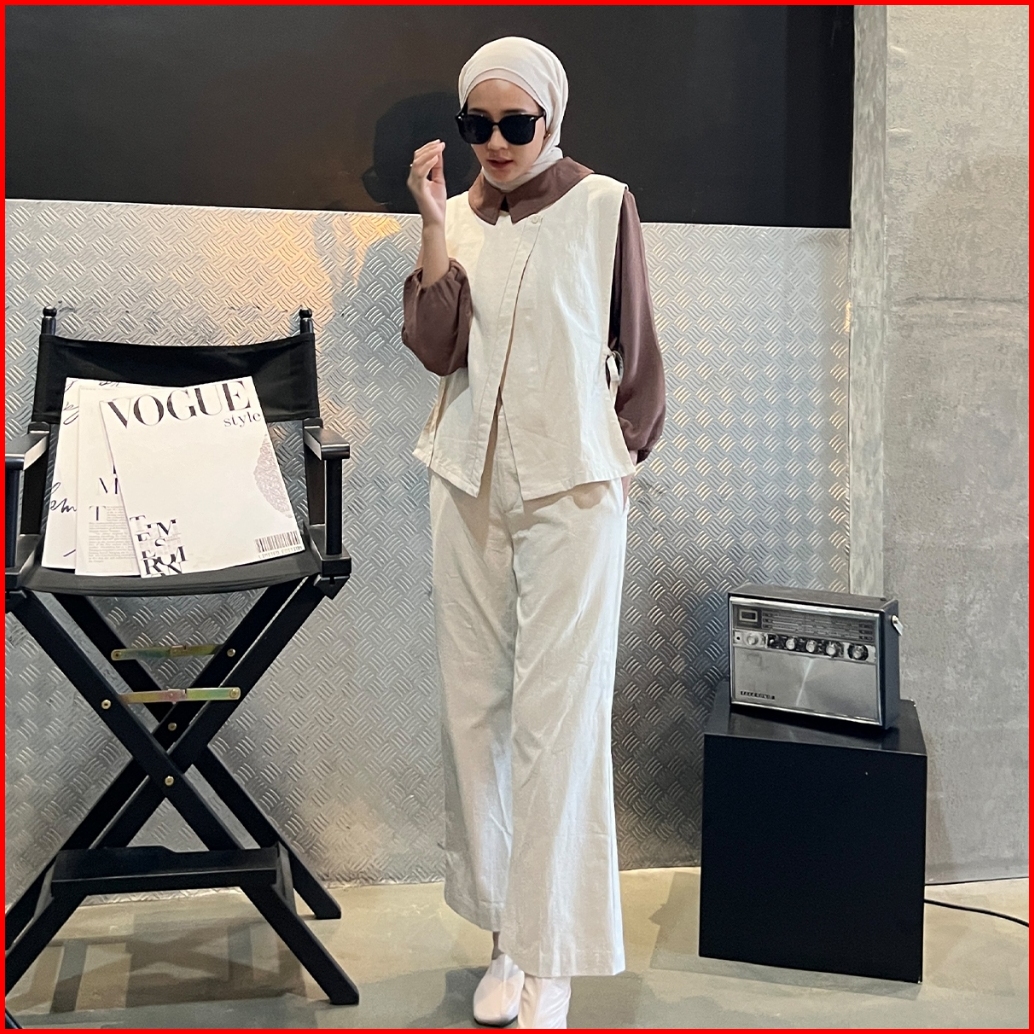 Yeppuoutfit - Minju Oneset Basic Setelan Wanita Vest Unik Dan Celana Kulot Lucu Outfit Hijab Style