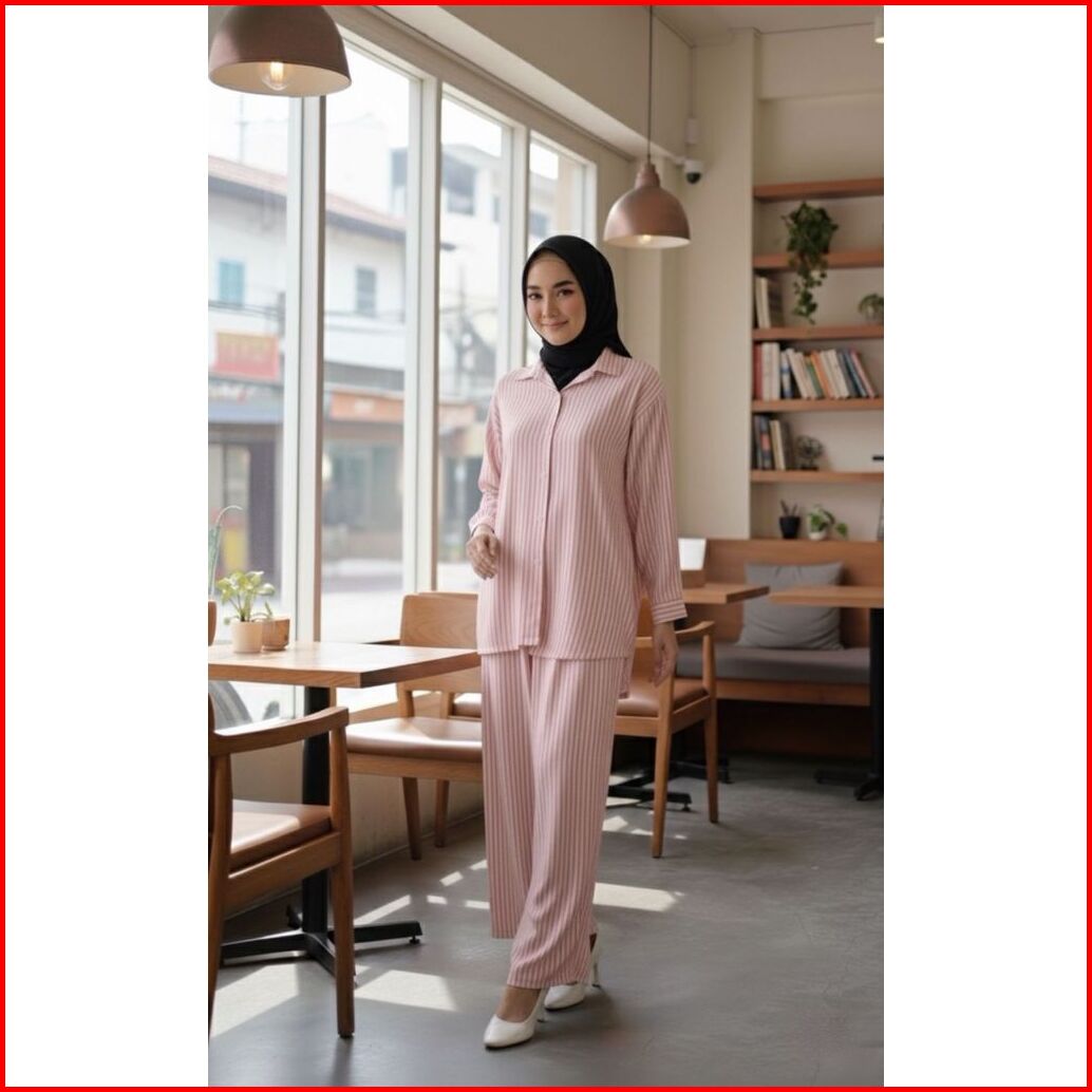 Setelan Wanita Kekinian One Set Zara Set Salur Wanita One Set Stripe Wanita Korean Style Setelan Katun Garis Garis Wanit