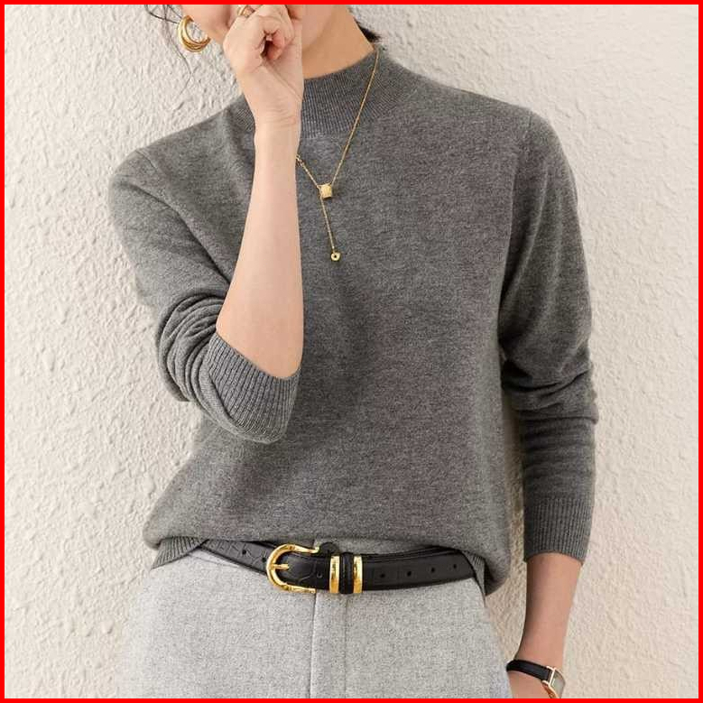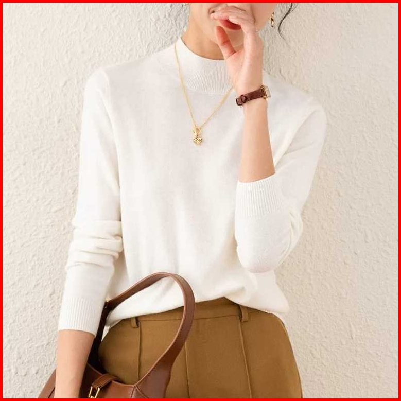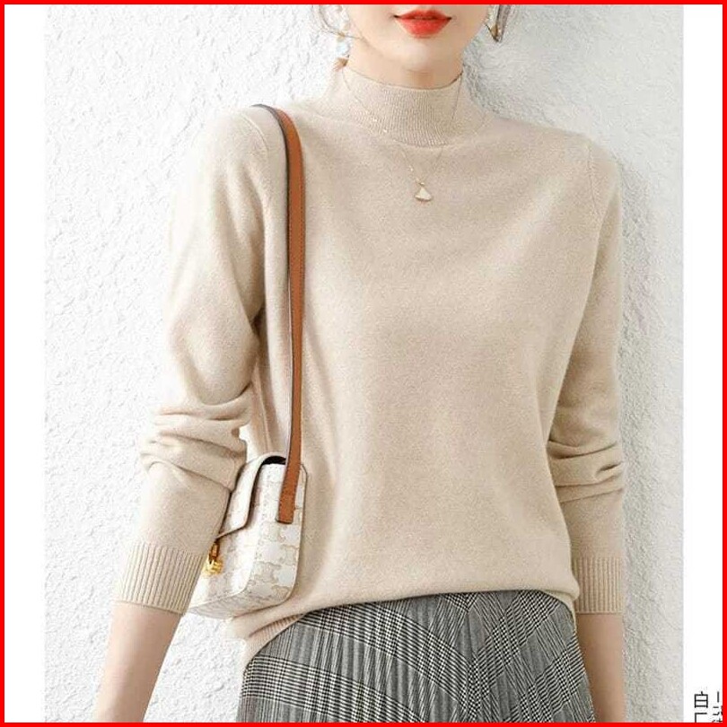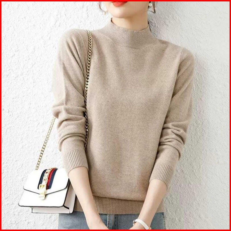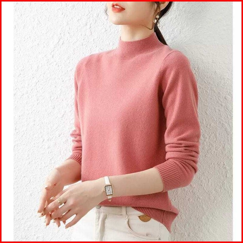 Avanue.outlet D03 Blouse Knit Wanita Polos Long Neck Lengan Panjang Bahan Premium