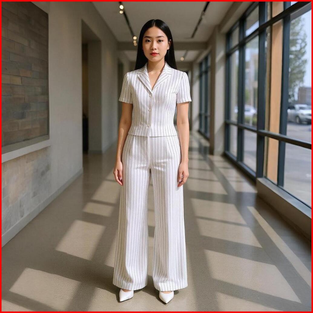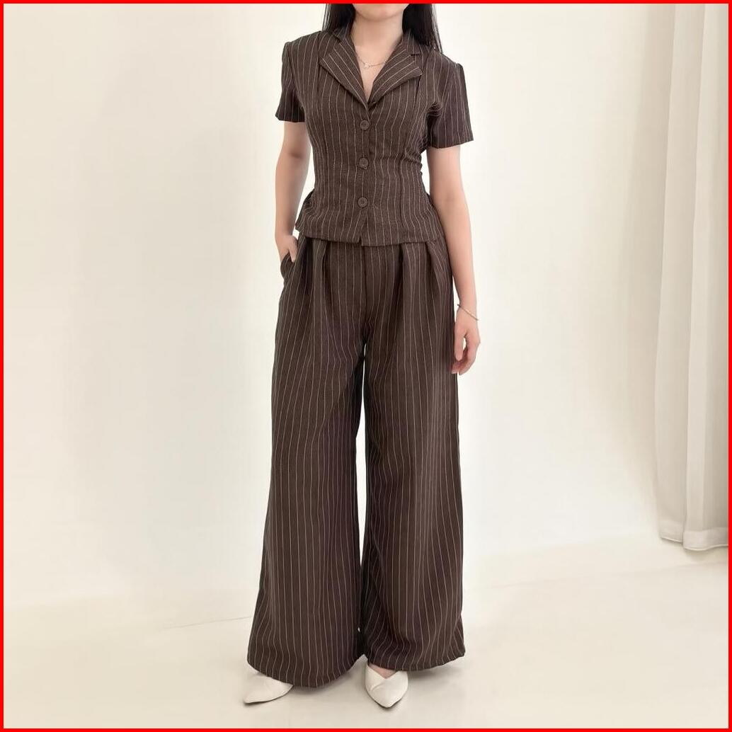 Set Viral Korean Stlye - Setelan One Set Wanita Atasan Celana Kulot Salur Stripe Formal Look Classy Elegan Fitted Bod