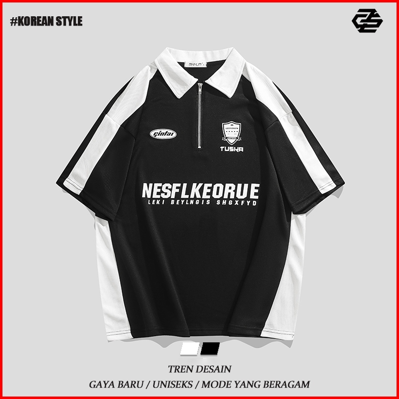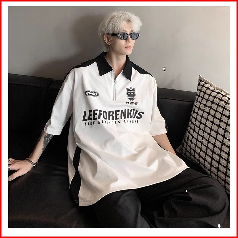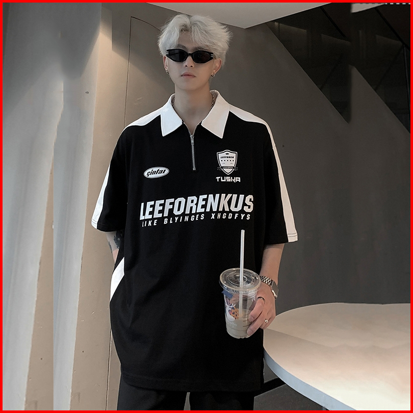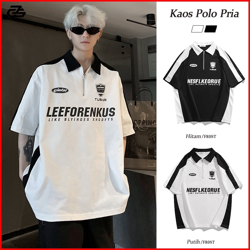 Kaos Oversize Polo Shirt Pria T Shirt Pria Black White Kaos Polo Pria Korean Style Lengan Pendek Vintage Shirt Kaos Polo