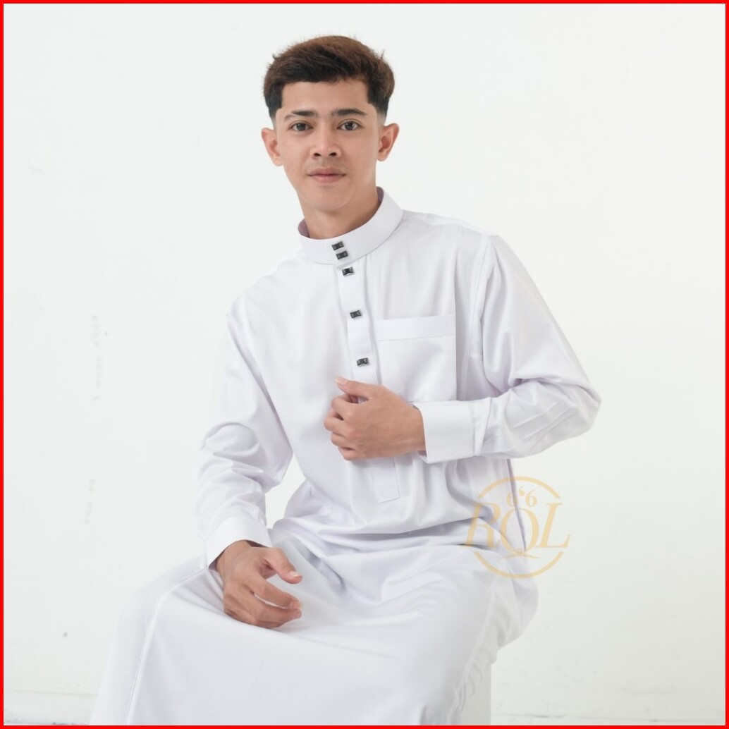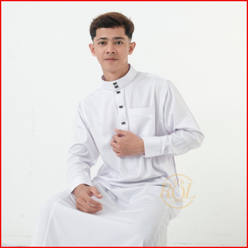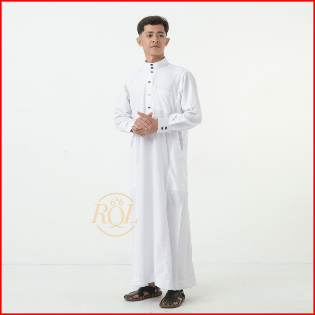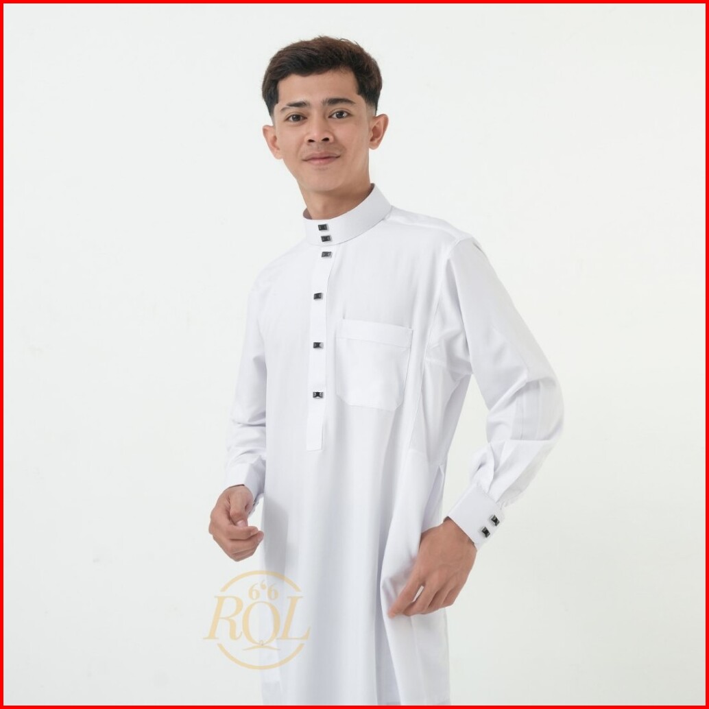 Raqilla - Jubah Kareem Putih S M L Xl Bahan Polymicro Baju Gamis Jubah Pria Muslim Dewasa Lengan Panjang Kancing Manset