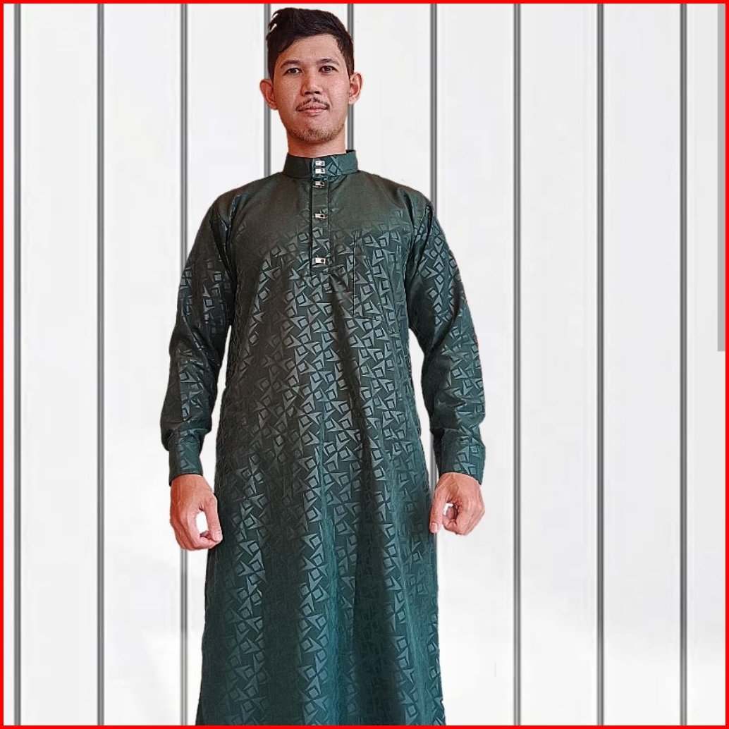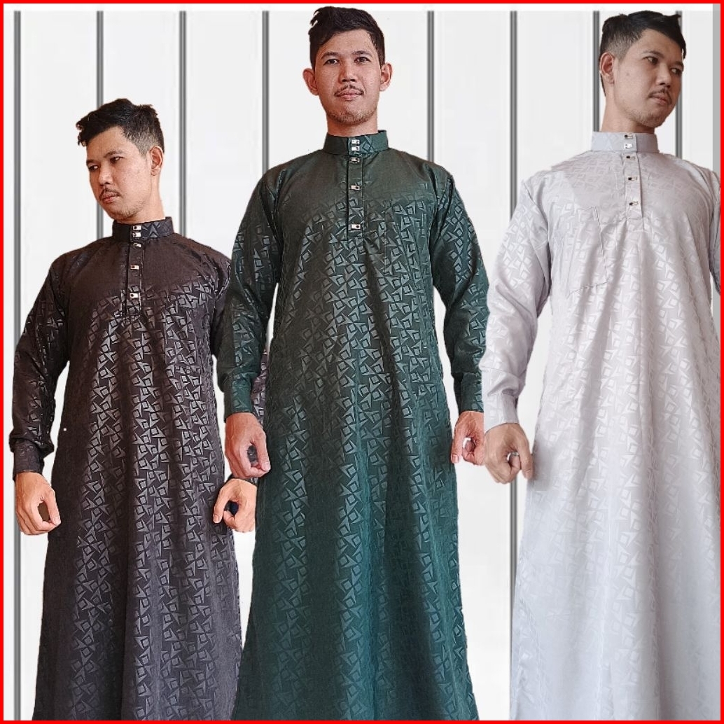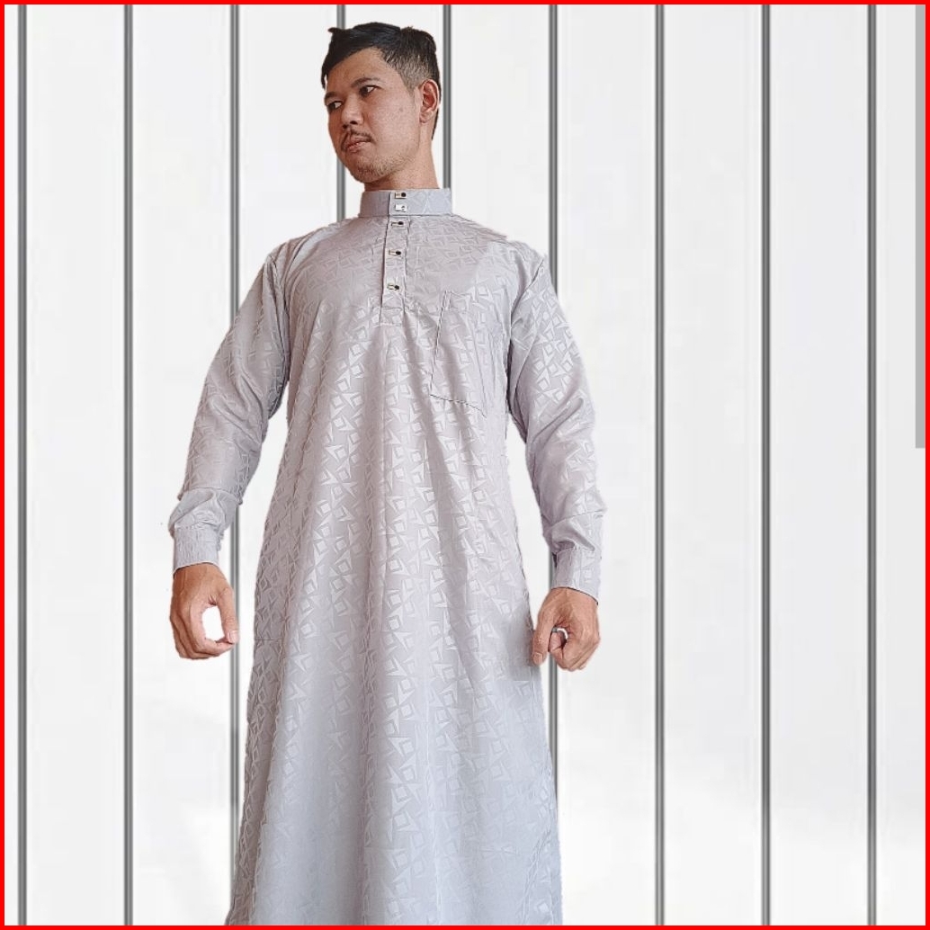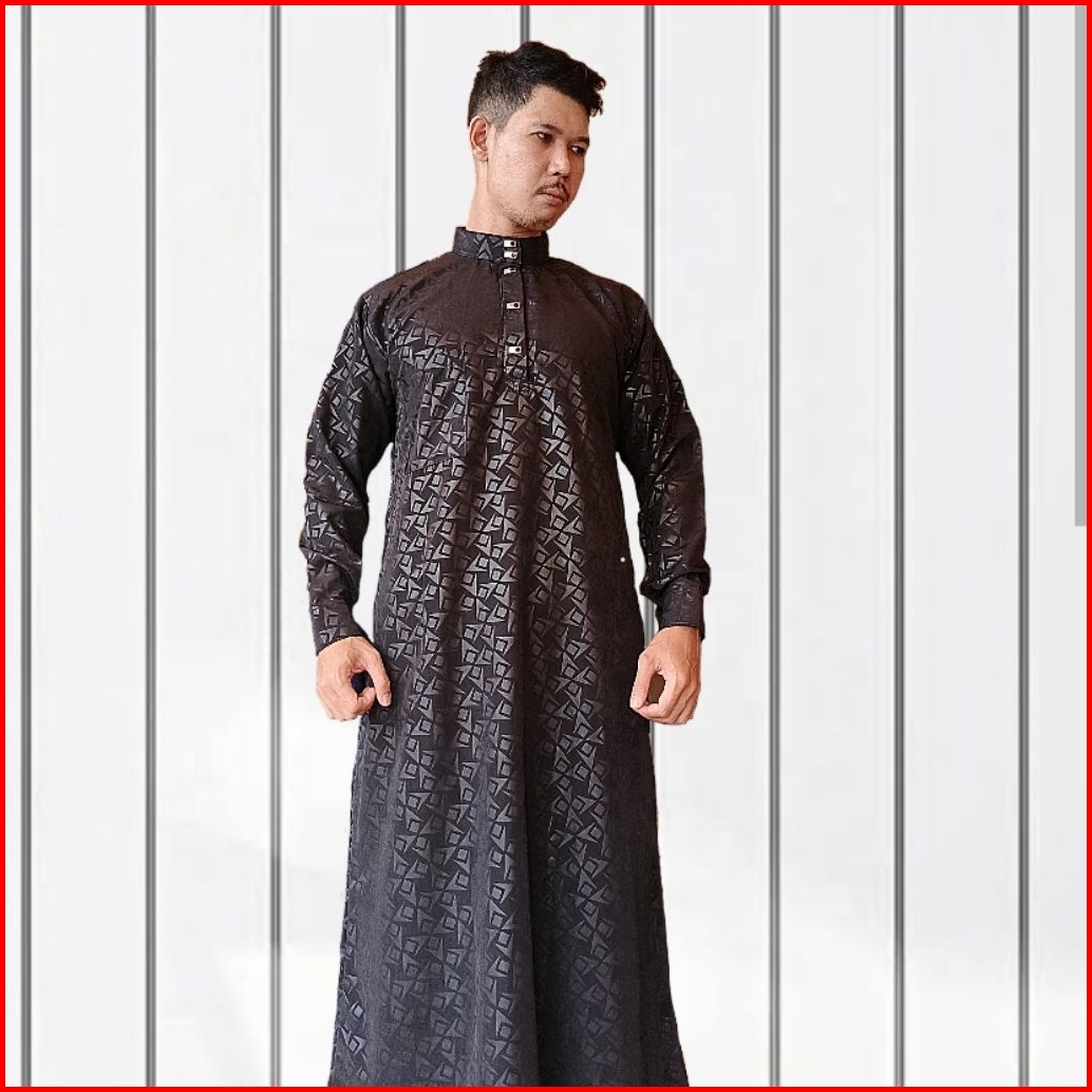 Jubah Embos Motif Suriken Manset Kancing Besi Gamis Pria Dewasa Jubah Laki Laki Trendy