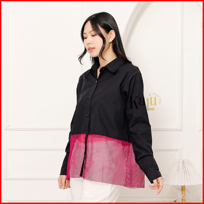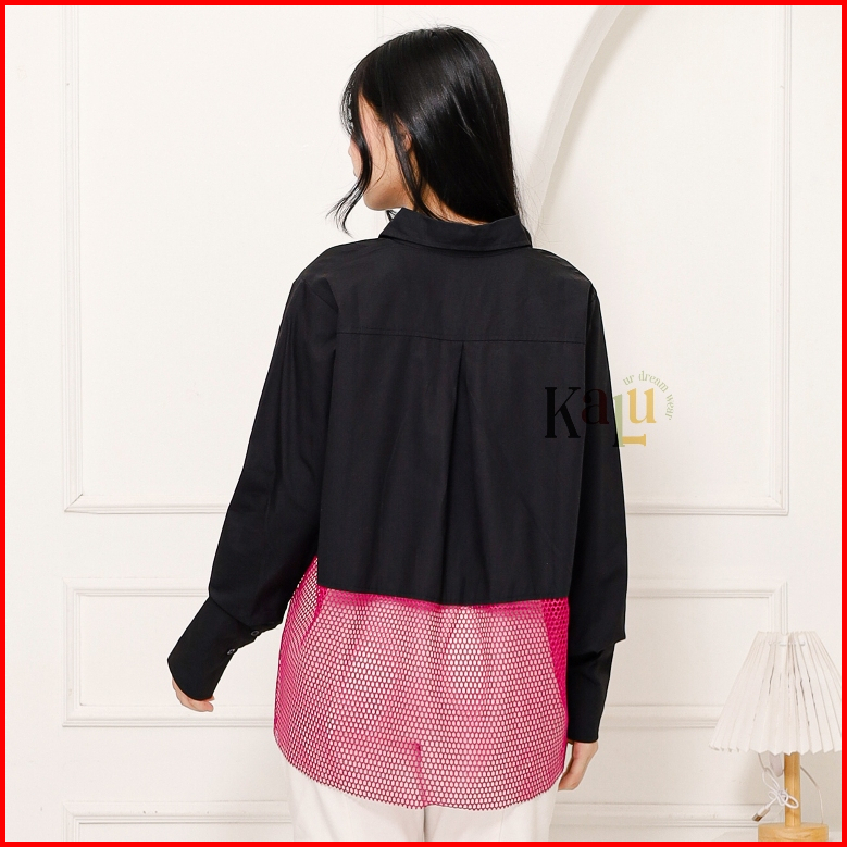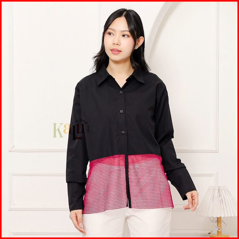 Mesh Combination Shirt Kemeja Jaring Wanita Kemeja Hitam Wanita Kemeja Aesthetic