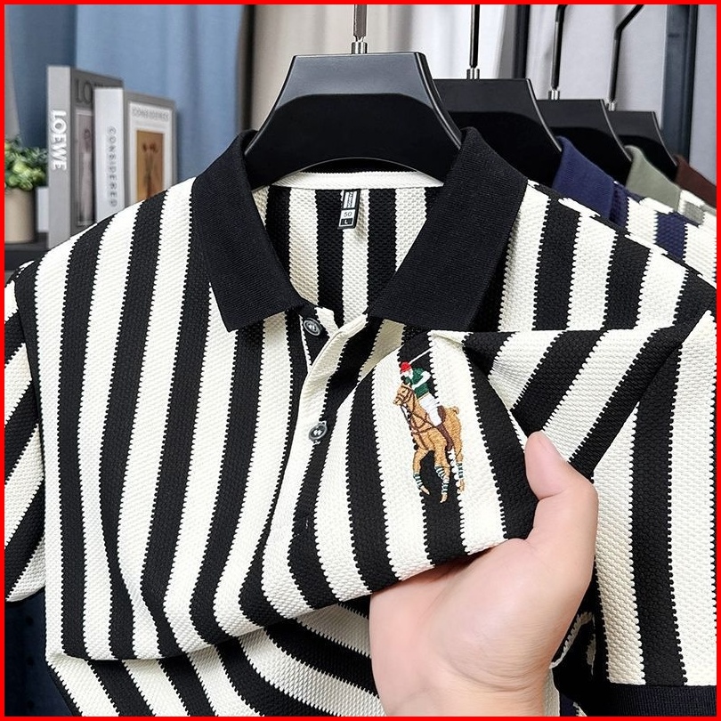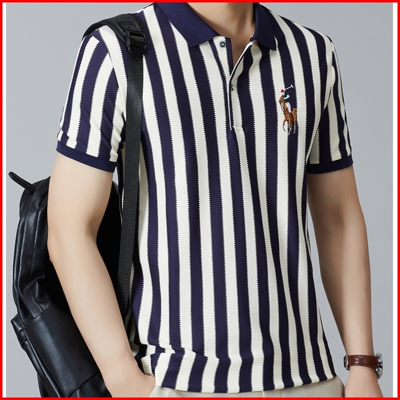 Polo Shirt Pria Kaos Garis Garis Pria Kaos Kerah Pria Lengan Pendek Bordir T Shirt Kaos Polos Pria Kapas Baju Kaos Kerah