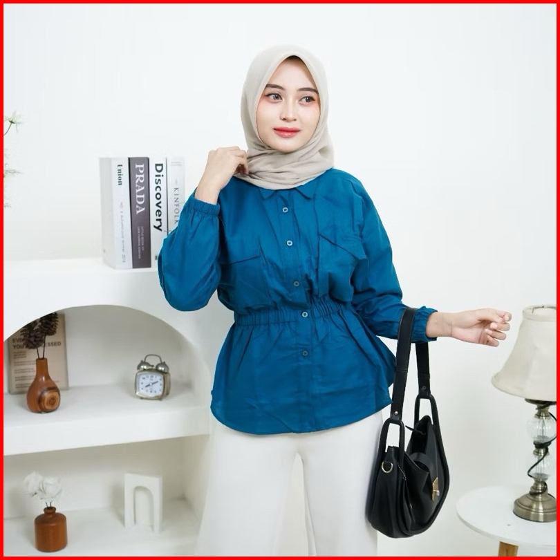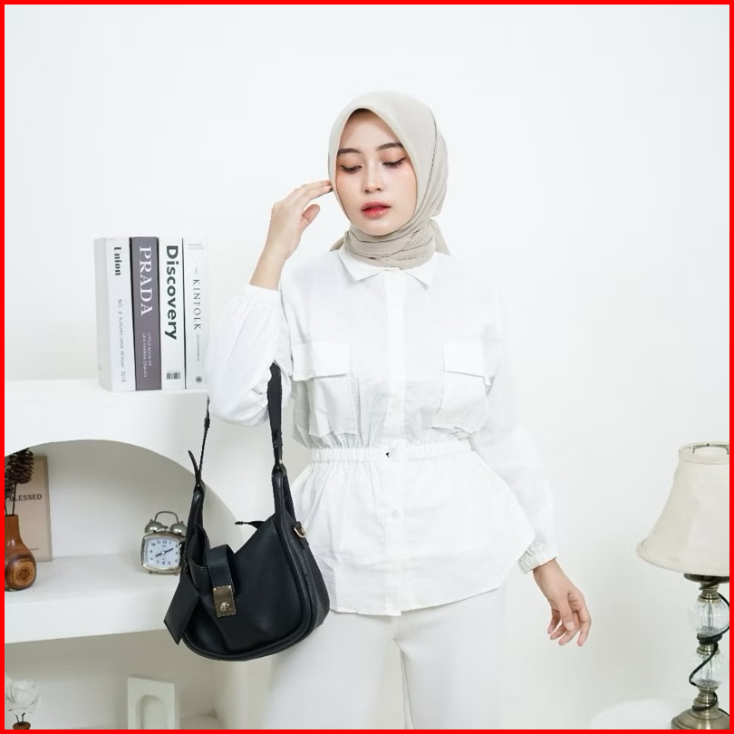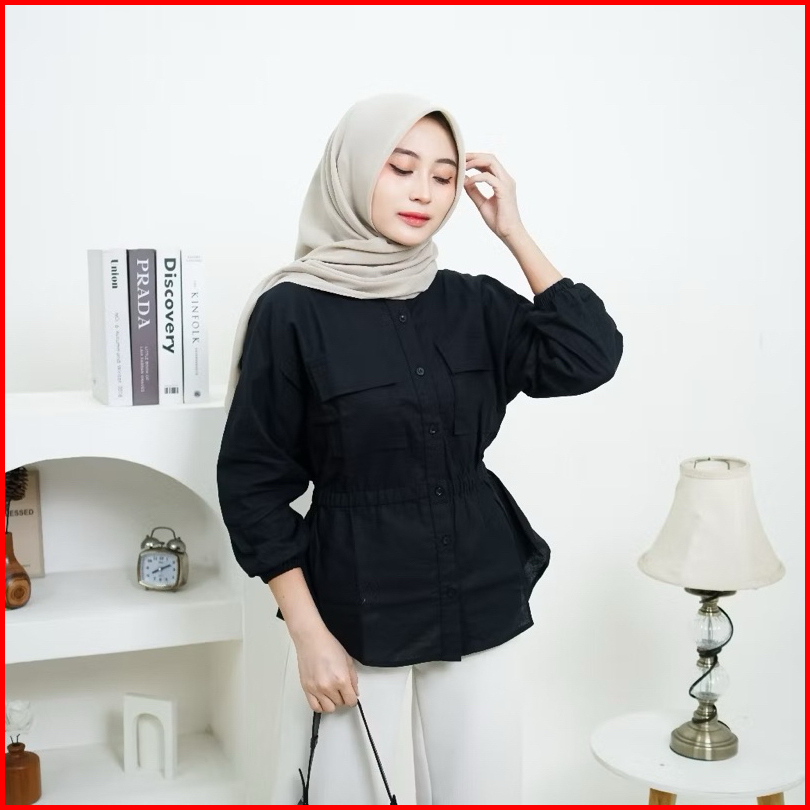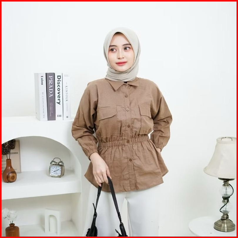 Beena Linen Shirt Top Atasan Wanita Blouse Casual