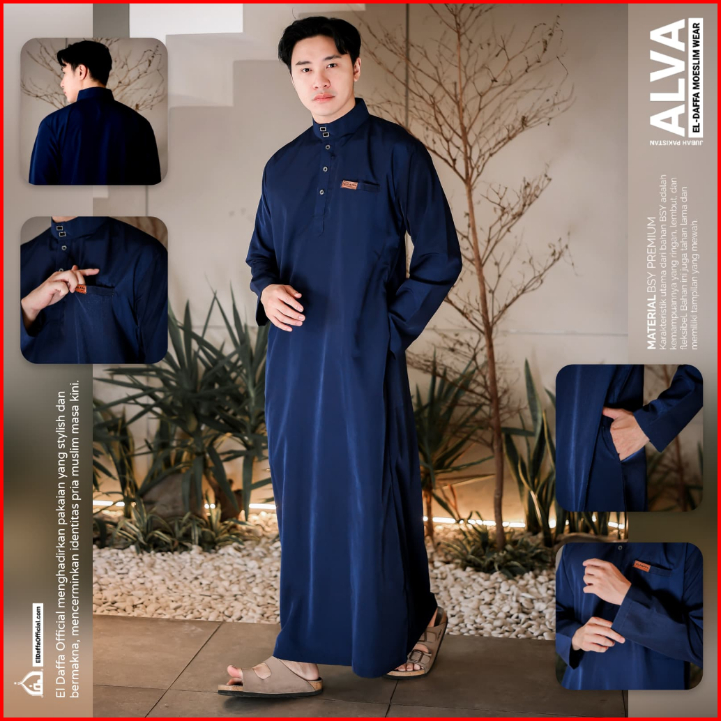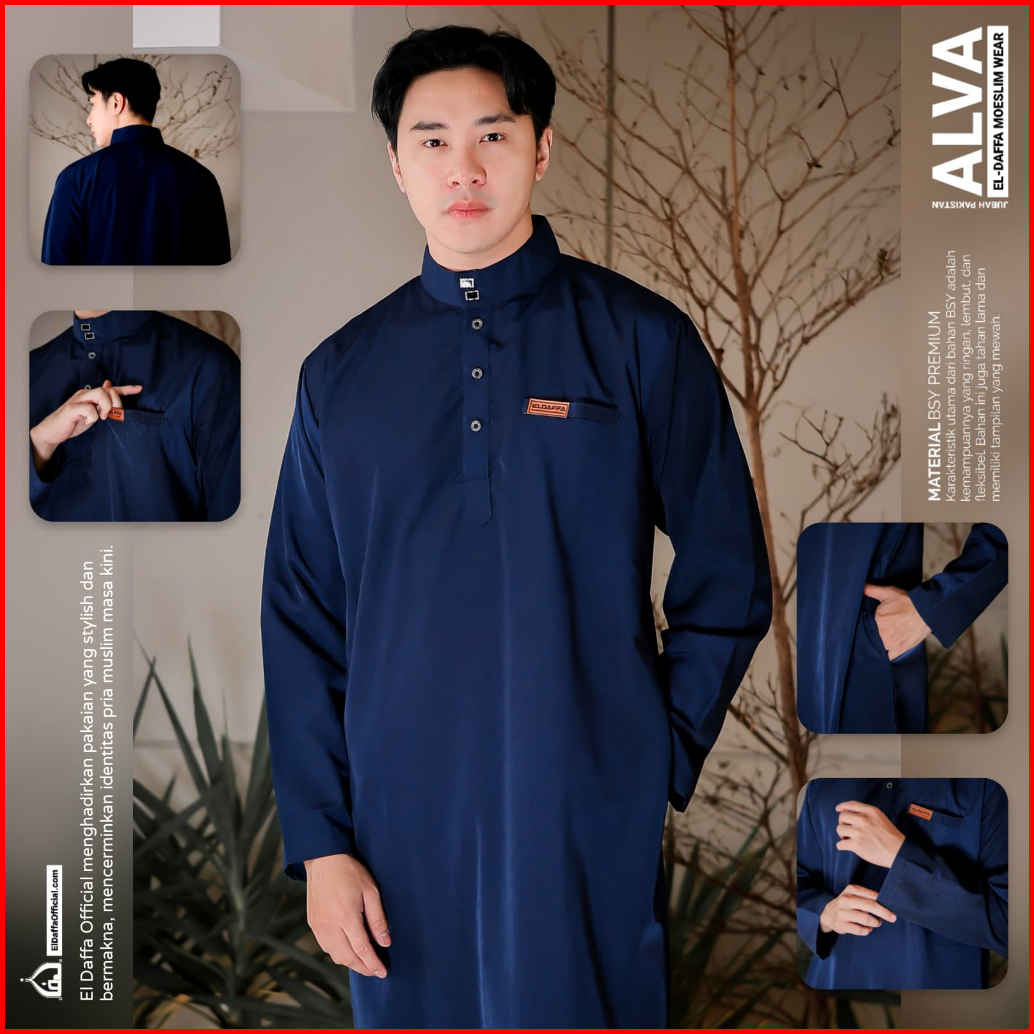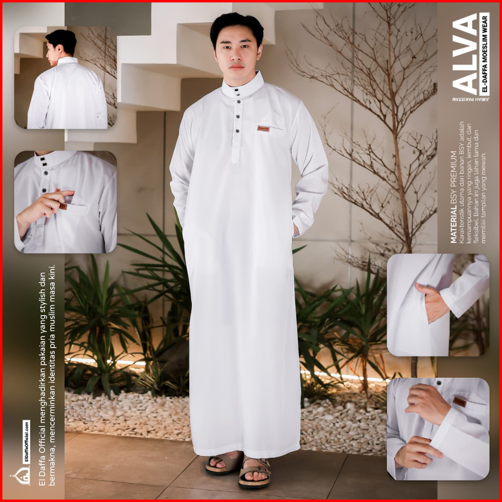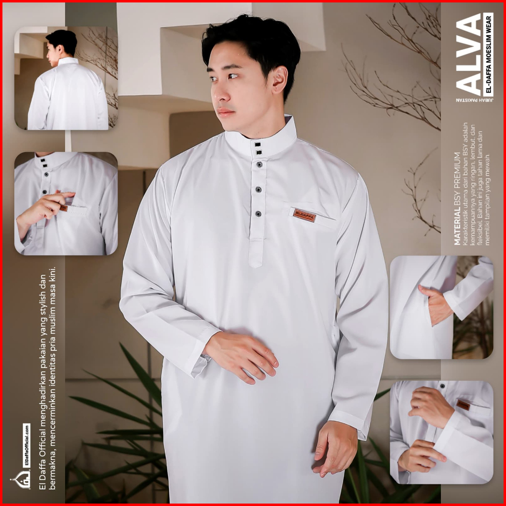 Jubah Gamis Pria Alva Original El Daffa - Baju Muslim Jubah Pria Terbaru