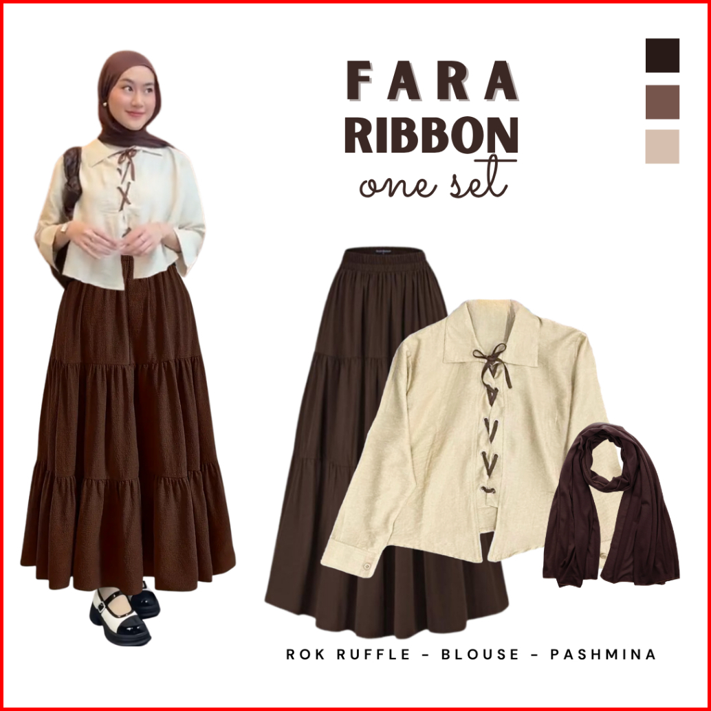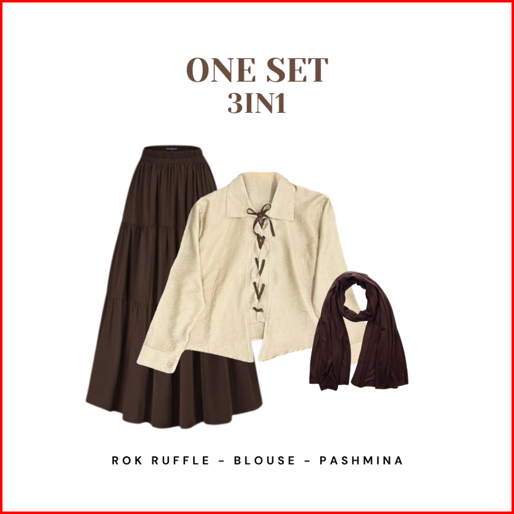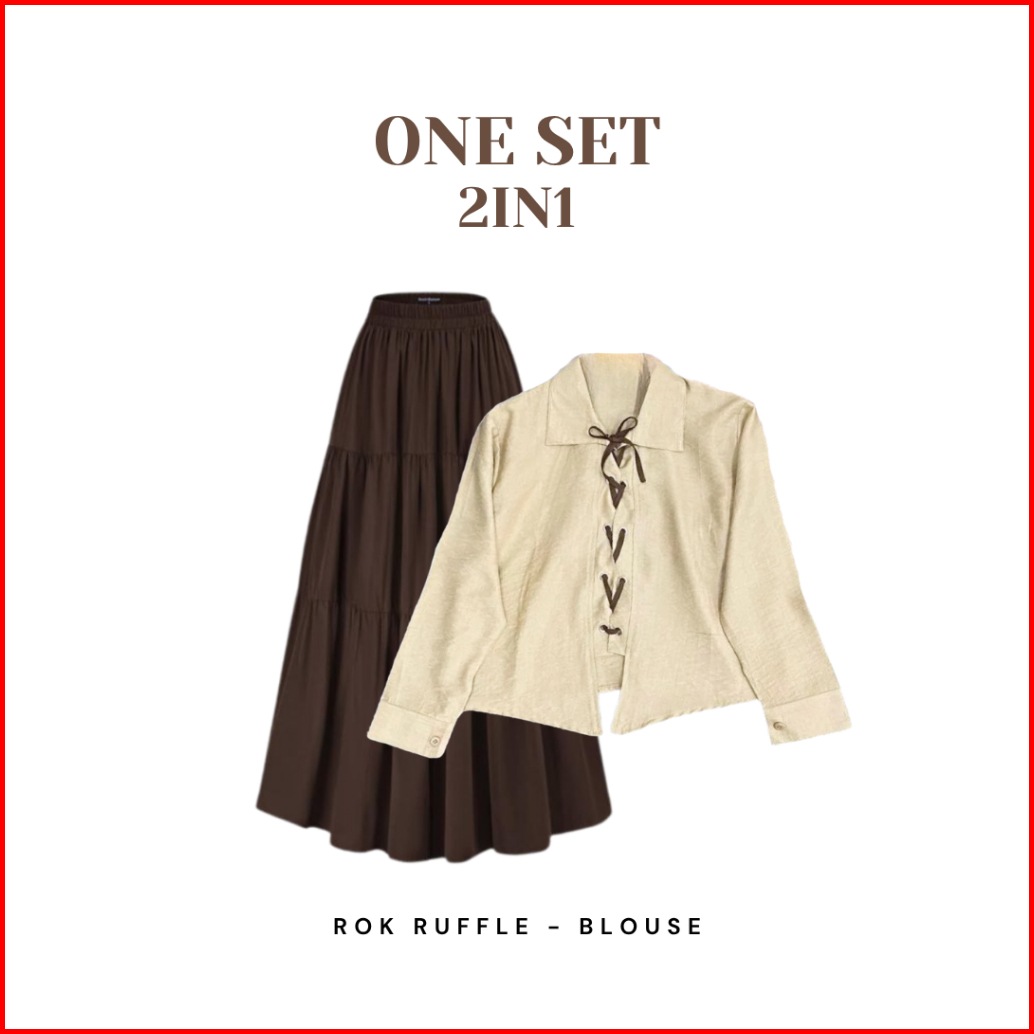 Setelan Outfit Korean Style Blouse Pita Rok Ruffle Pashmina Ootd Hijab Wanita Terbaru - Cto63