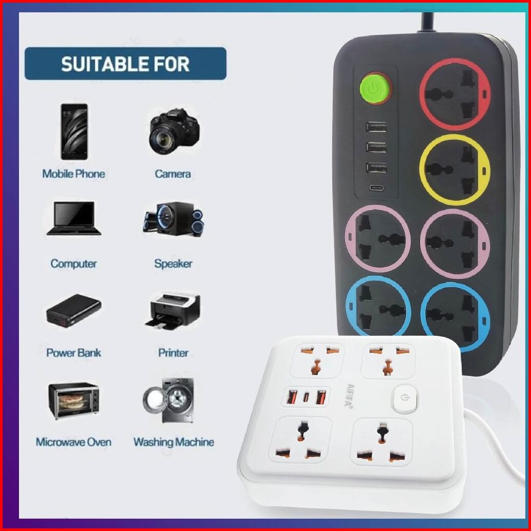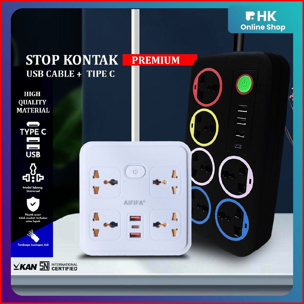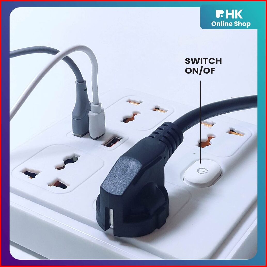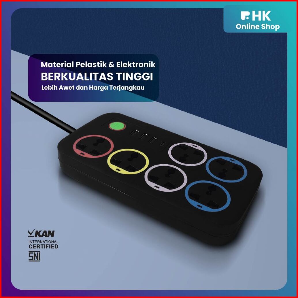 Hk-stop Kontak Kabel Usb Serbaguna 4 6 Lubang Colokan Warna Putih Hitam