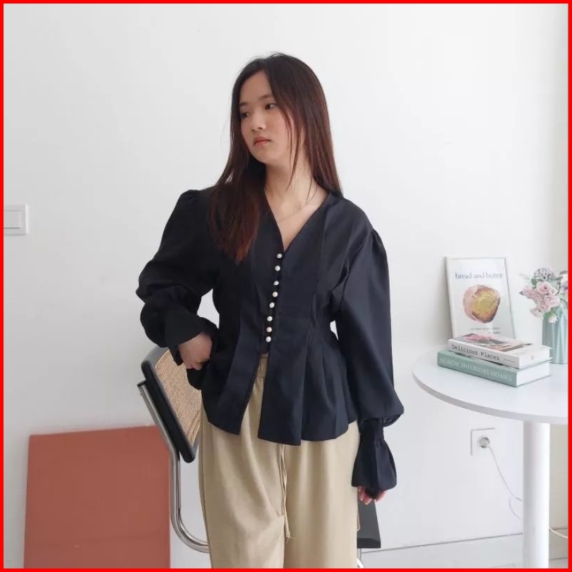 Baru Bora Top Blouse Vintage Wanita Korea Blouse Kantor Wanita Kasual