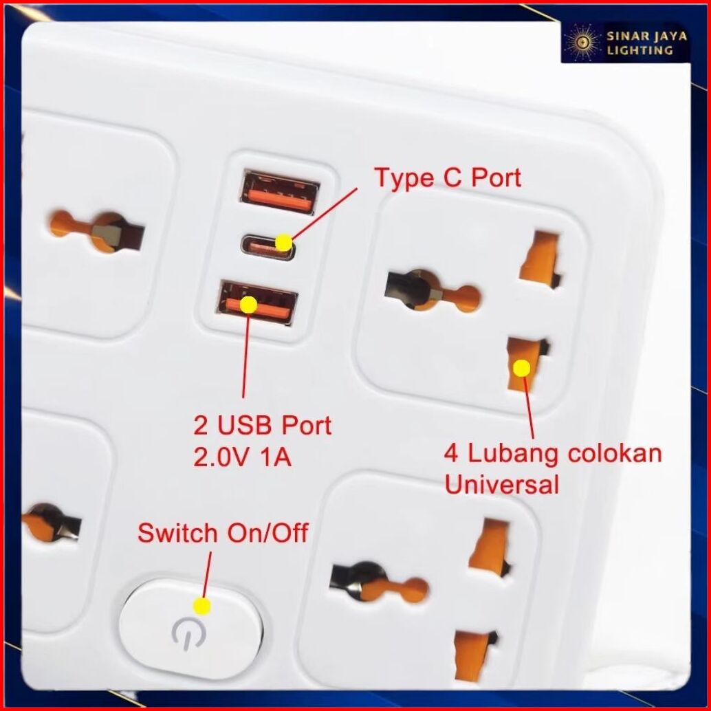 Stop Kontak Kabel Usb Serbaguna 4 6 Lubang Colokan Warna Putih Hitam