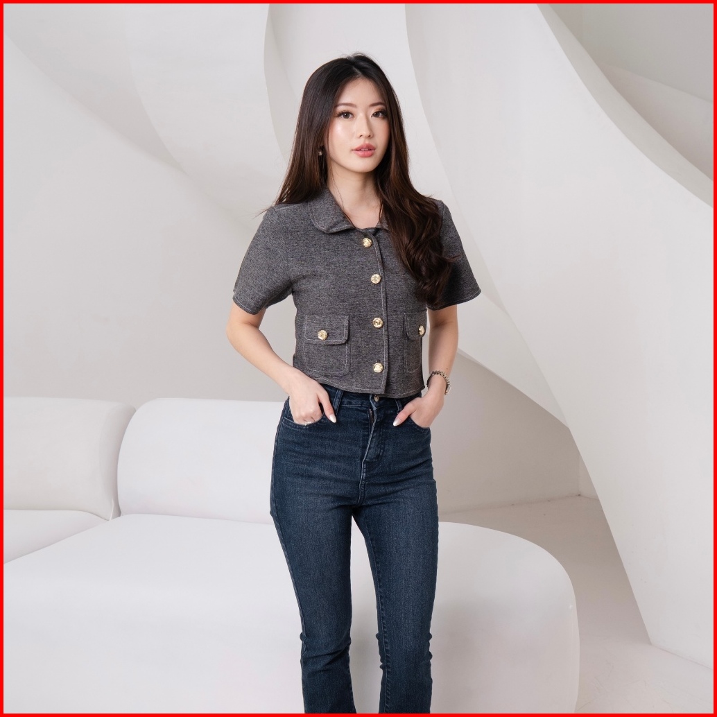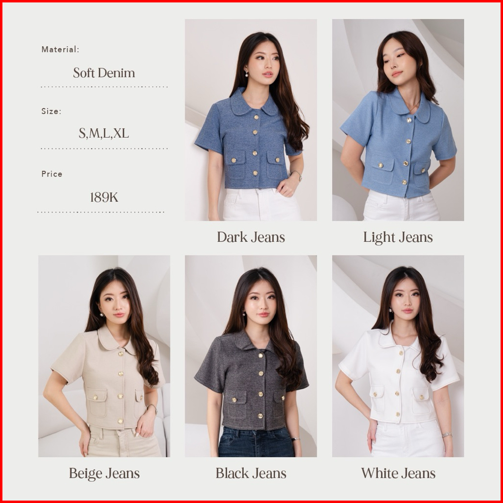 Oxford Top -- Ocha Wear X Valerie Pola Elegant Top Trendy Casual Tweed Soft Denim