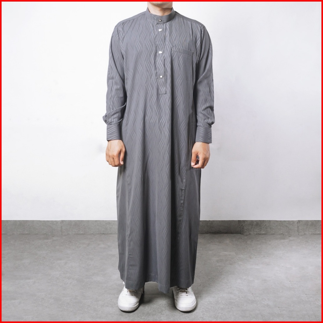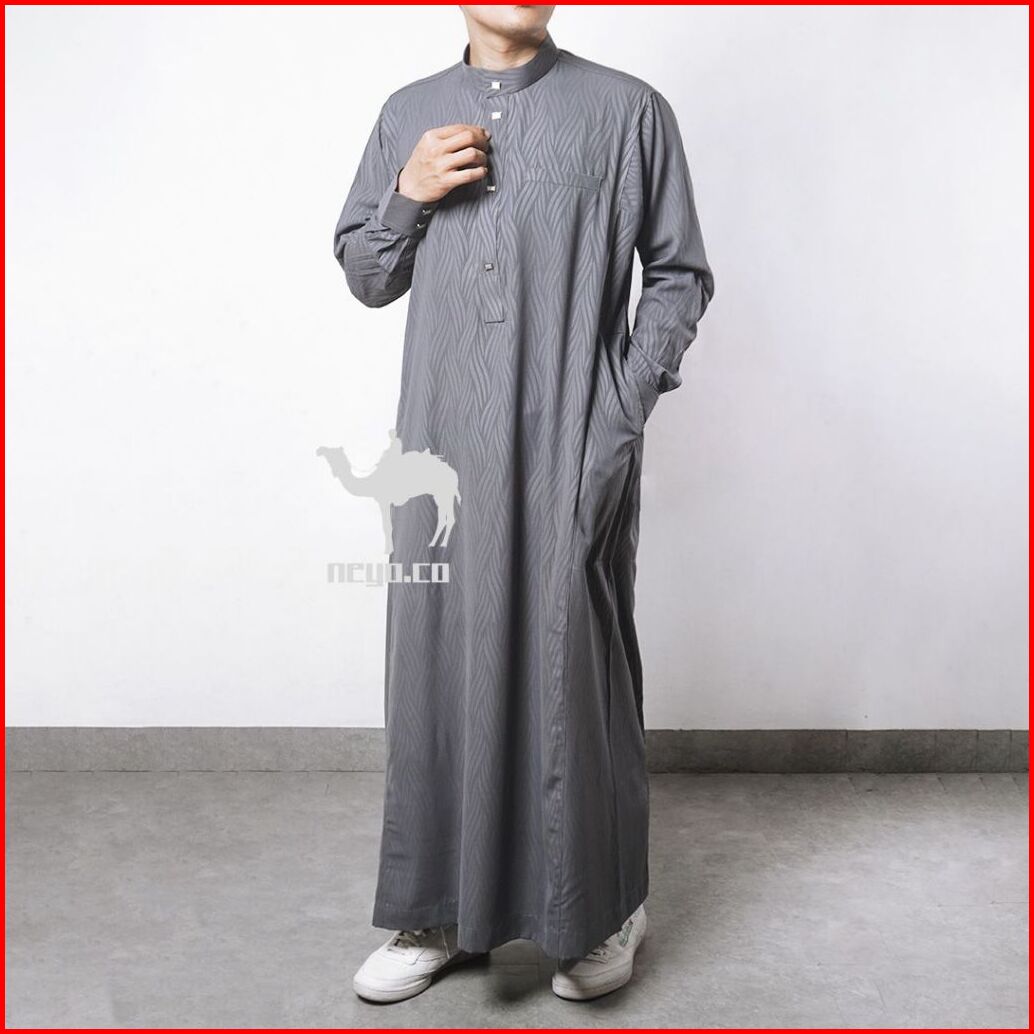 Neyo.co - Gamis Pria Jubah Arab Lengan Panjang Katun Emboss Import Tobe Arab