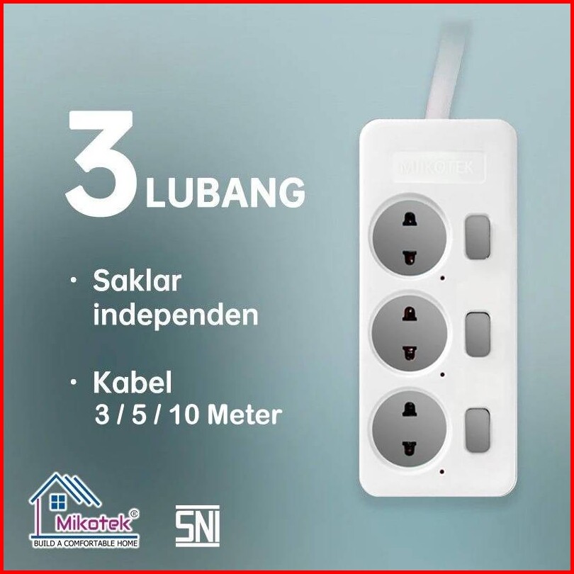 Mikotek Stop Kontak Kabel Switch On Off 3 4 5 Lubang 3m 5m 10 Meter Sni