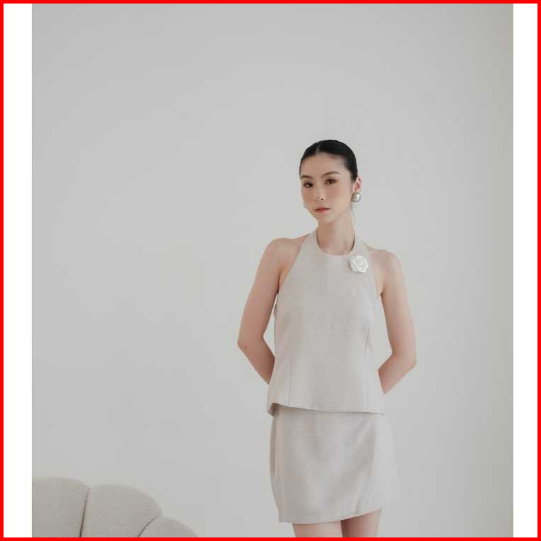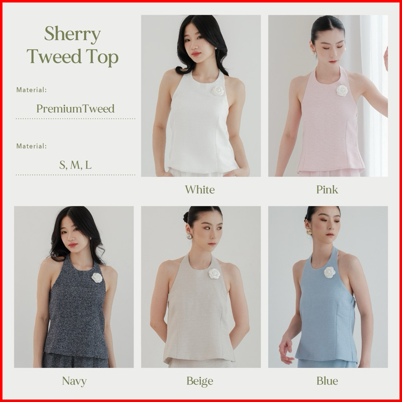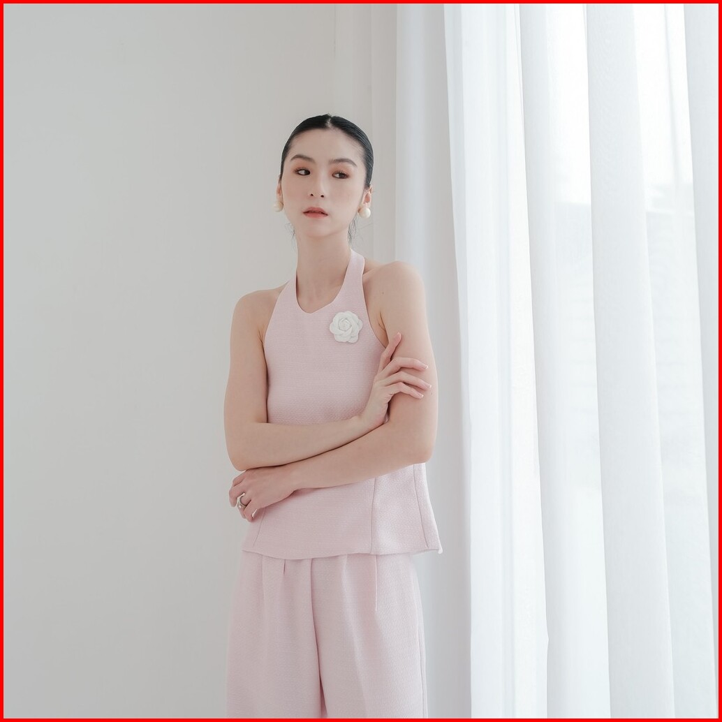 Sherry Camelia Tweed Top -- Ocha Wear Halter Top Pakaian Atasan Wanita Trendy Flower Top