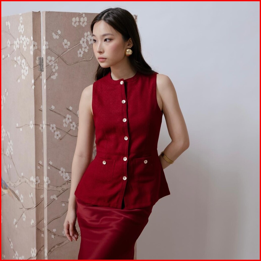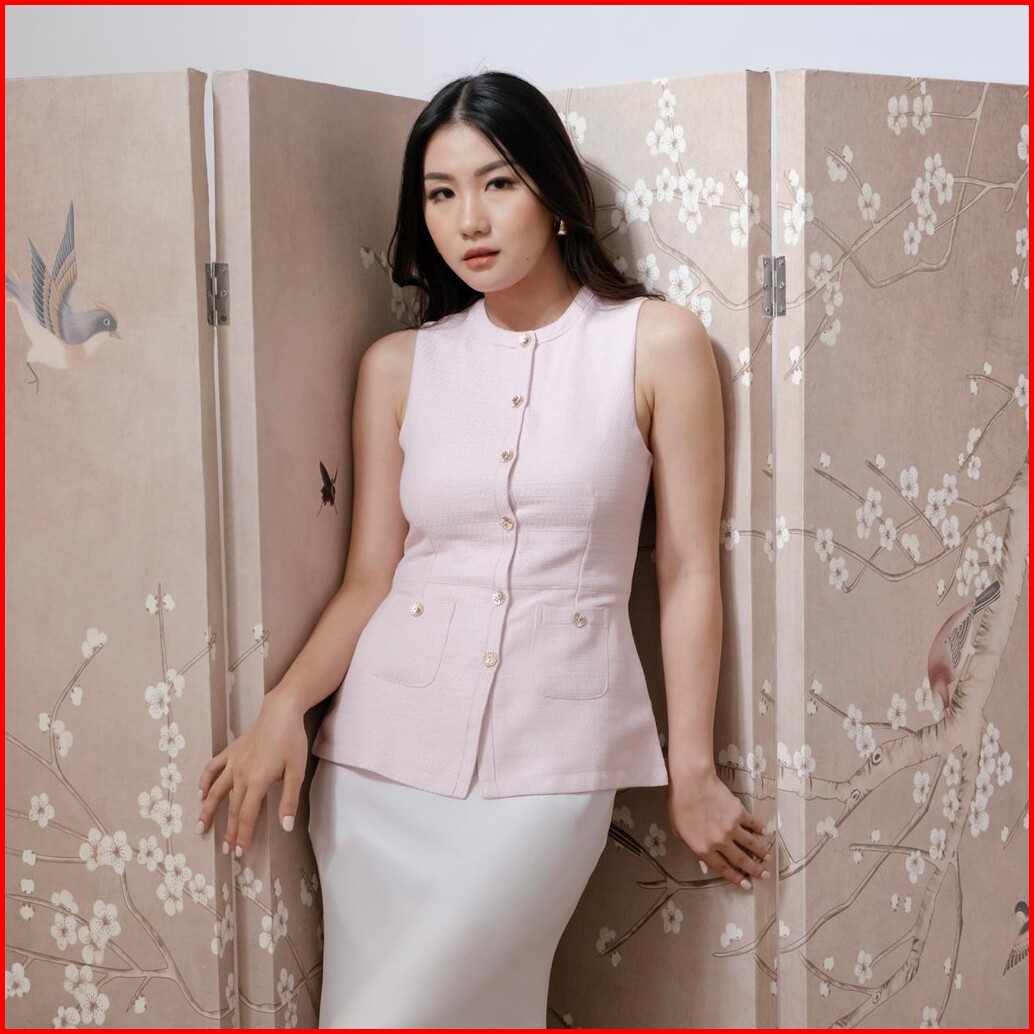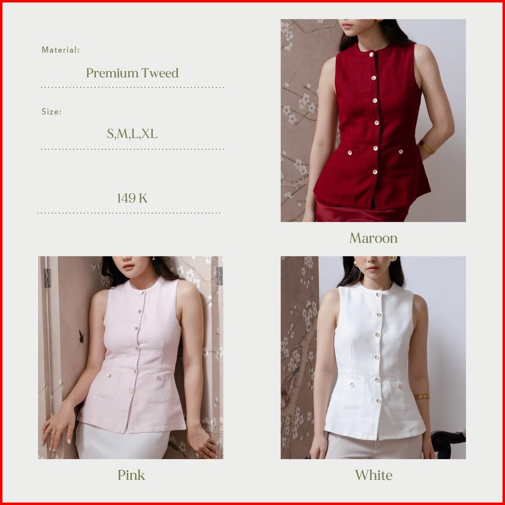 Qing Tweed Top -- Ocha Wear Atasan Kemeja Wanita Tweed Murah Premium Berkualitas Cny Collection