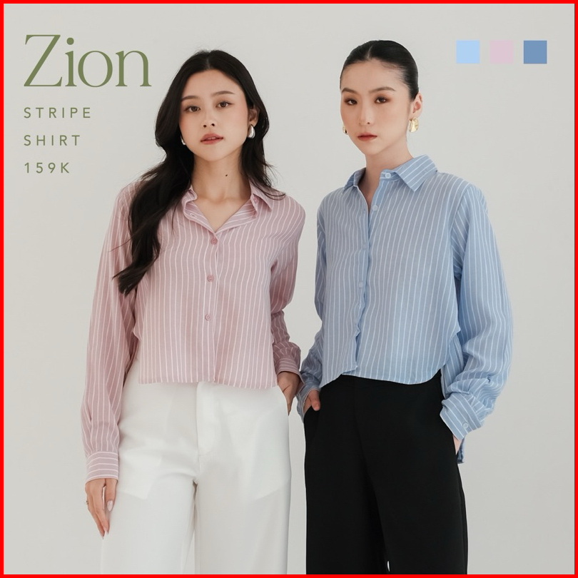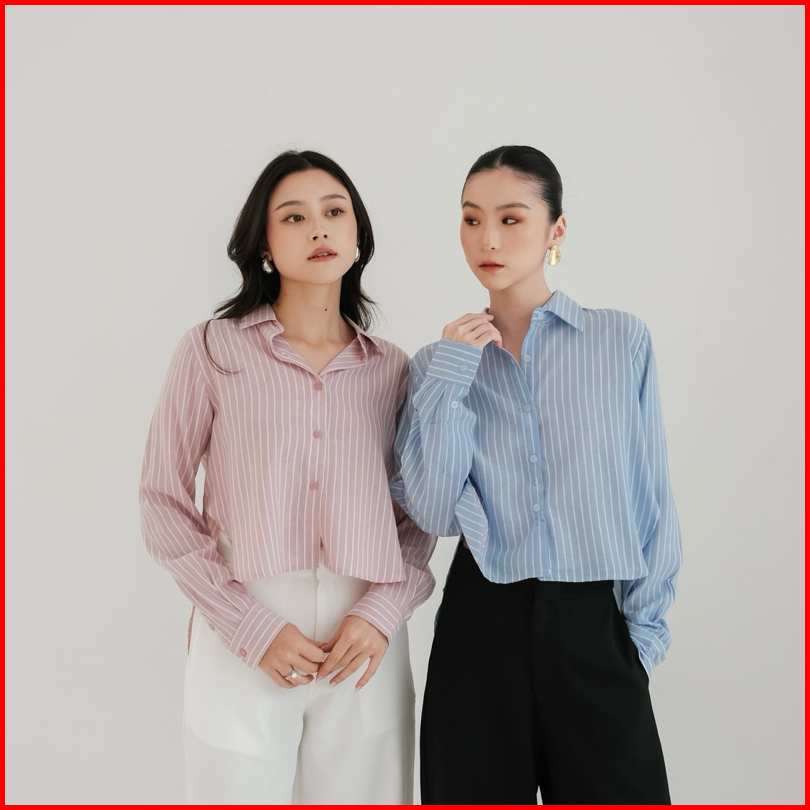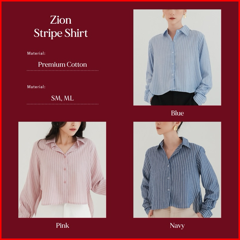 Zion Stripe Shirt --ocha Wear X With Ovisa X Wear Micha Kemeja Lengan Panjang Wanita Soft Fabric