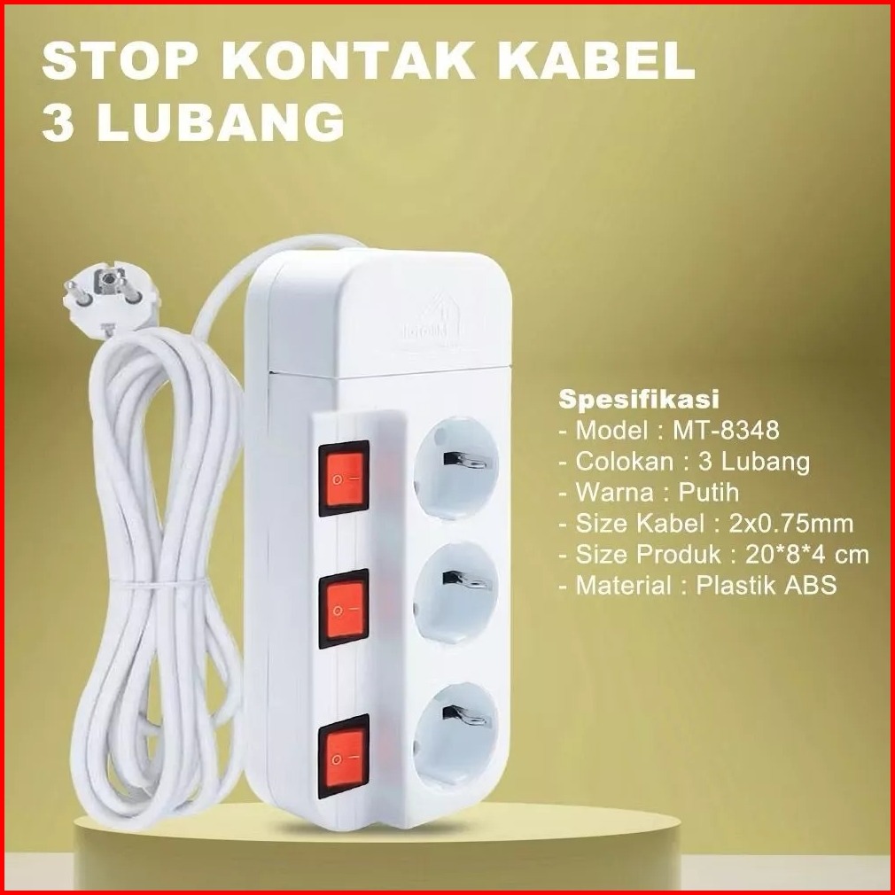 Stop Kontak 3 4 5 Lubang Kabel 3m 5 Meter Switch On Off Masing-masing Saklar On Off Tersendiri