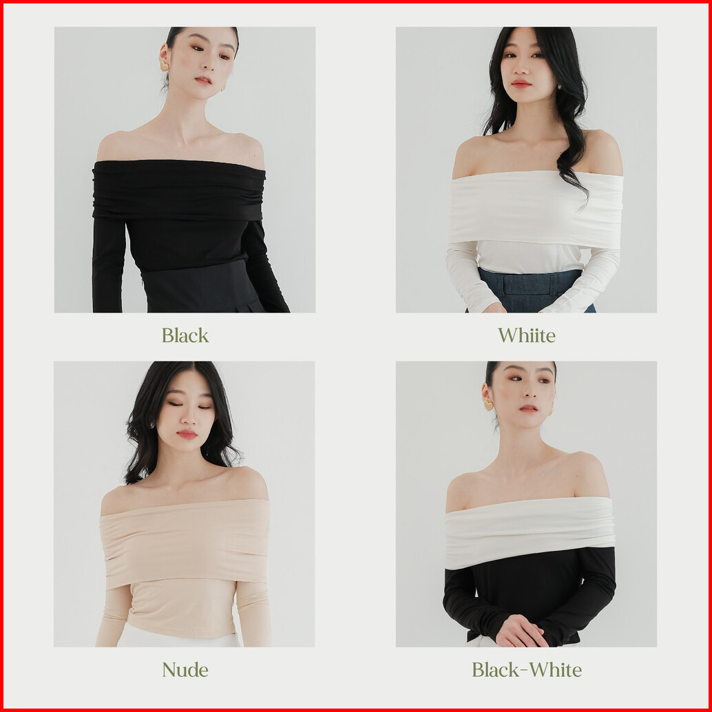 Aimee Longsleeve Sabrina Top -- Ocha Wear Pakaian Wanita Premium Knit Trendy Longsleeve