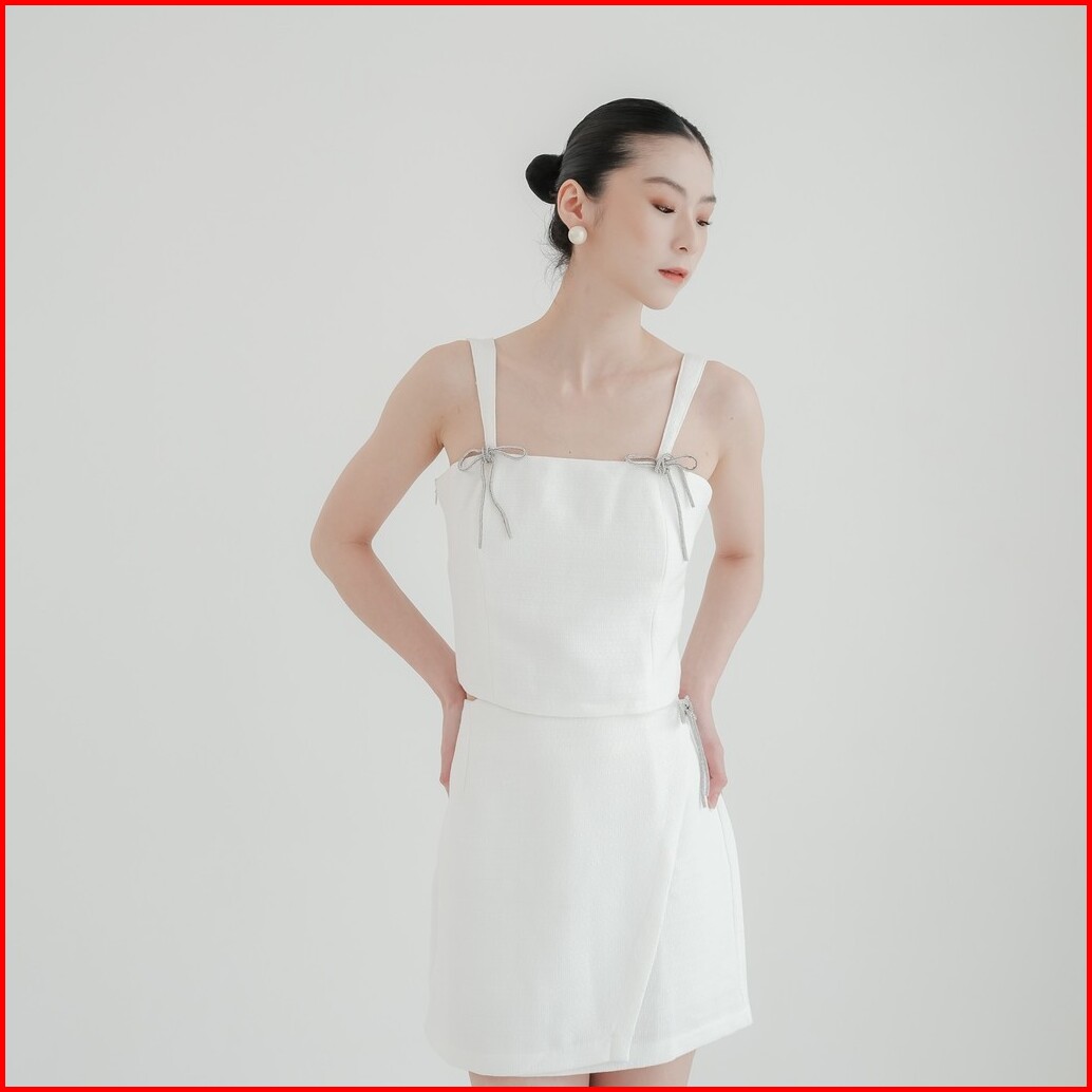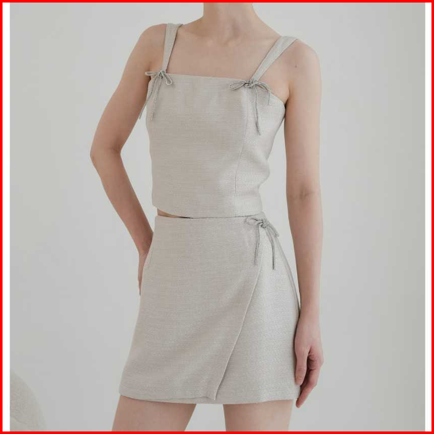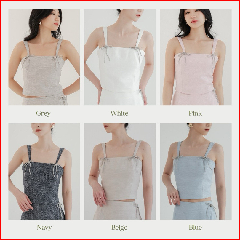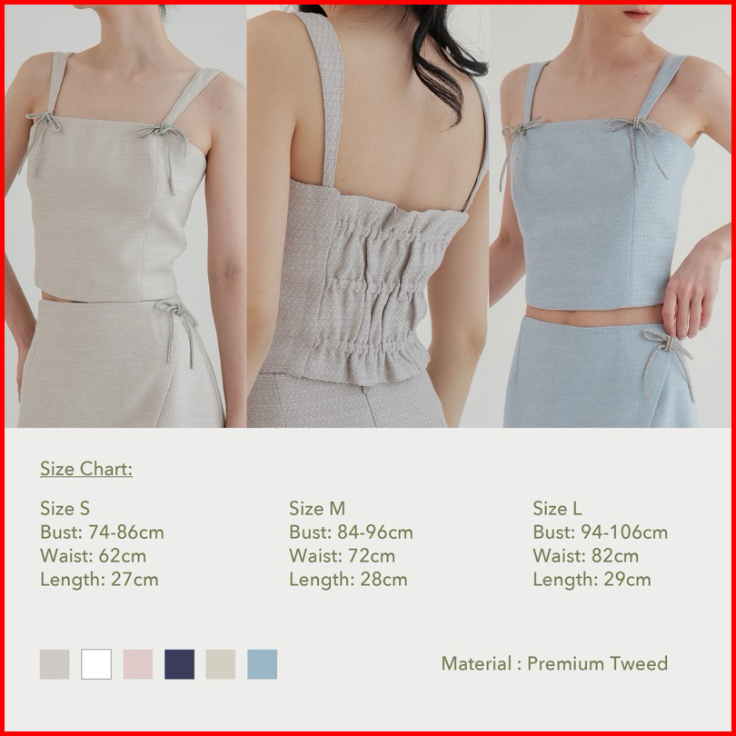 Chiara Tweed Bow Top -- Ocha Wear Bow Blink Tanktop Pakaian Atasan Wanita Trendy Casual Premium