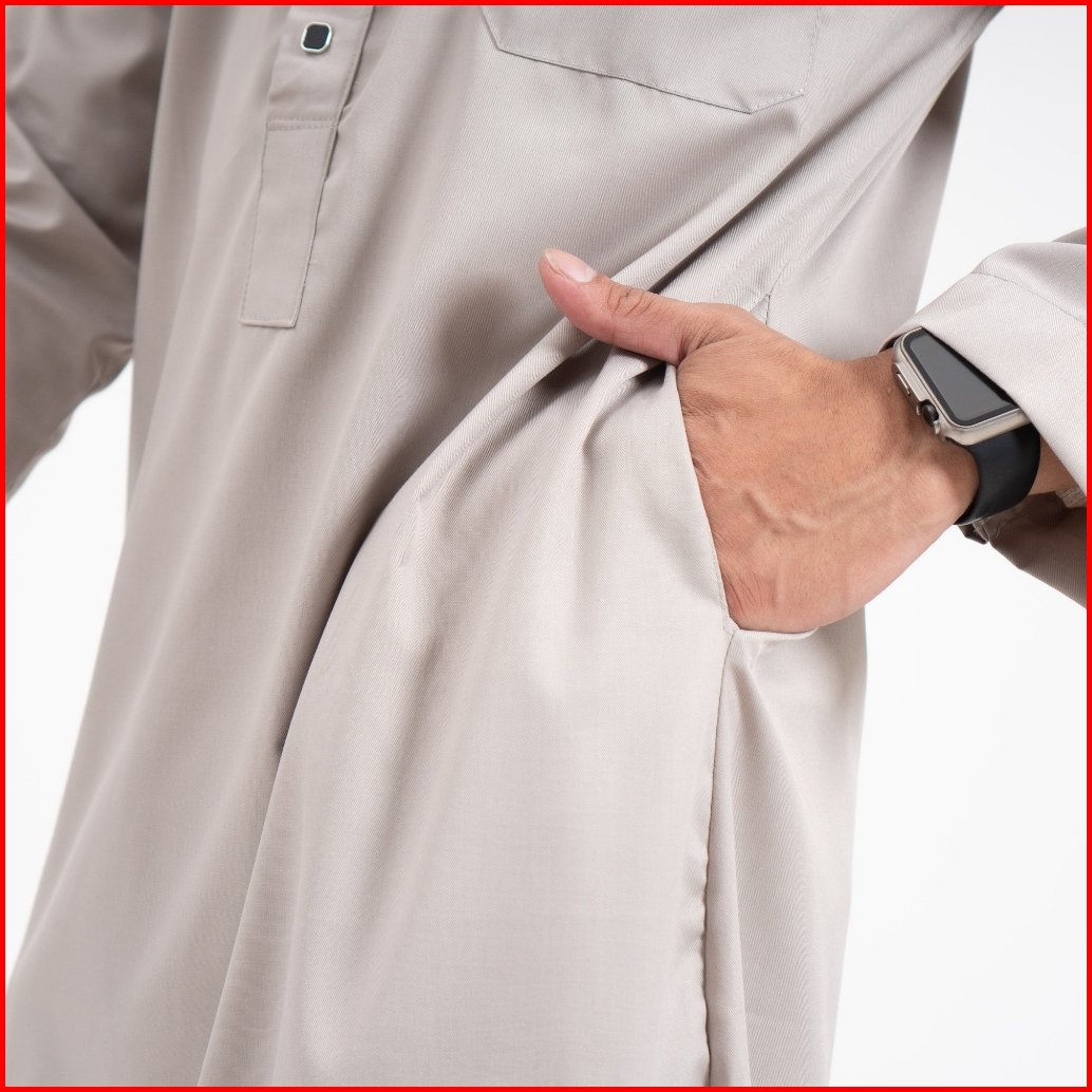 Jubah Slim Fit Dewasa Cowok Lengan Panjang Gamis Pria Muslim Gamis Ukasyah Hitam Krem Putih Abu Tua