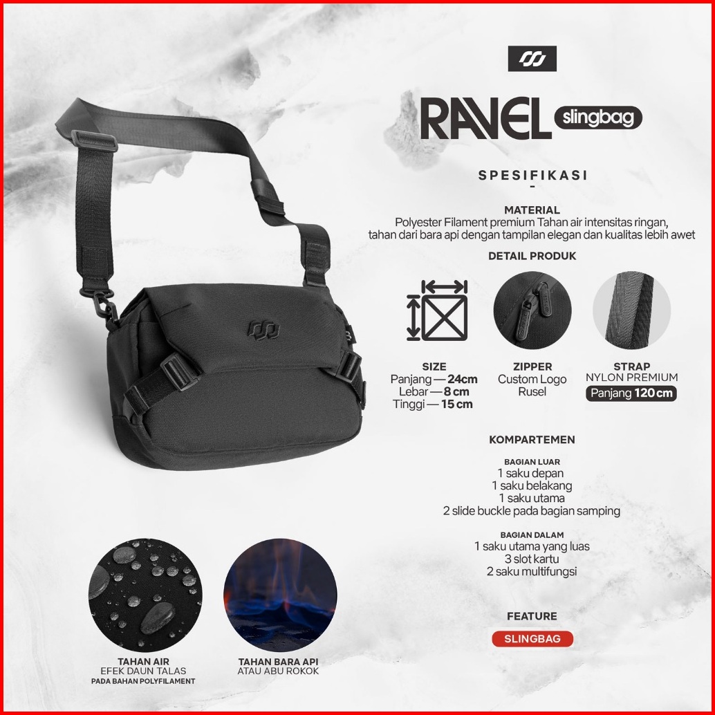 Ruselco I Slingbag Ravel Tas Hitam Selempang Pria Tahan Air Multifungsi