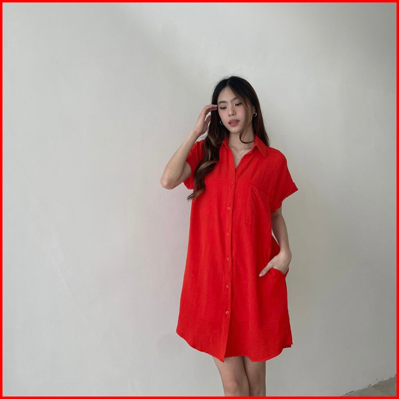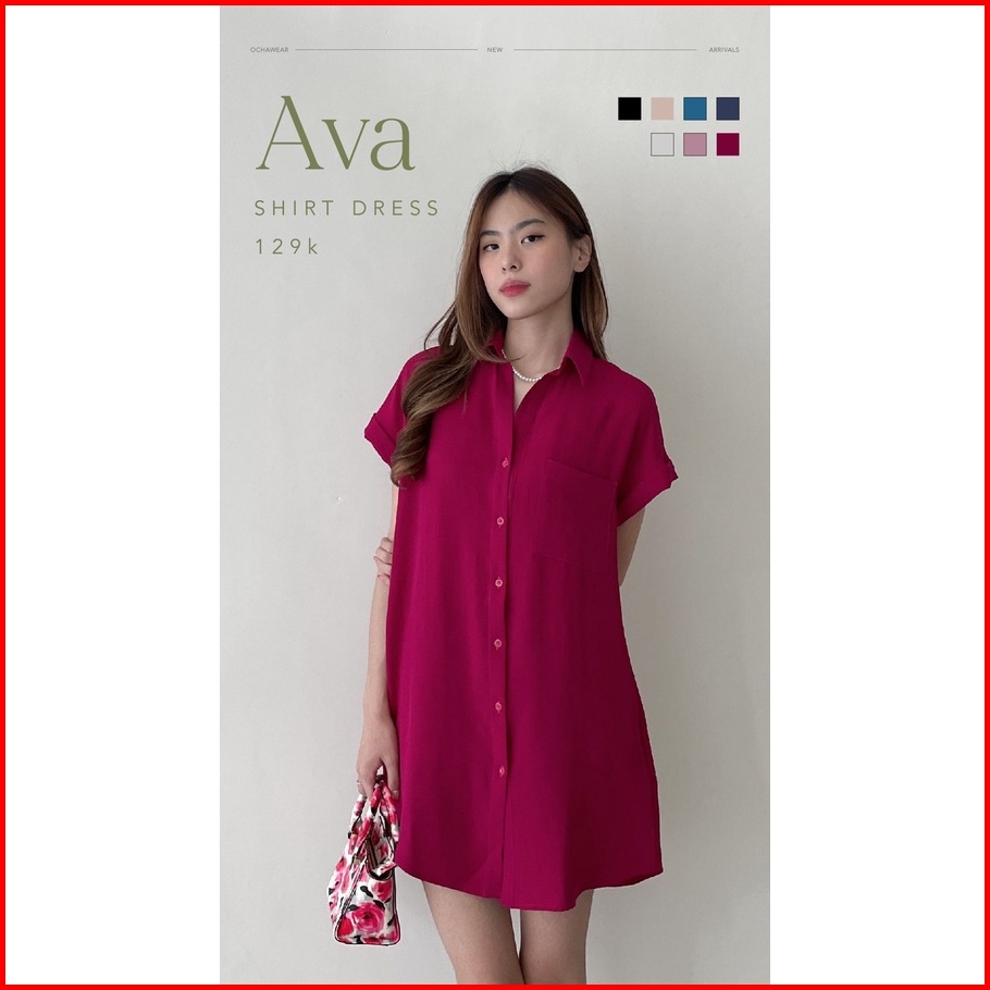 Ava Shirt Dress Ocha Wear Kemeja Dress Wanita Polo Crinkle Shirt