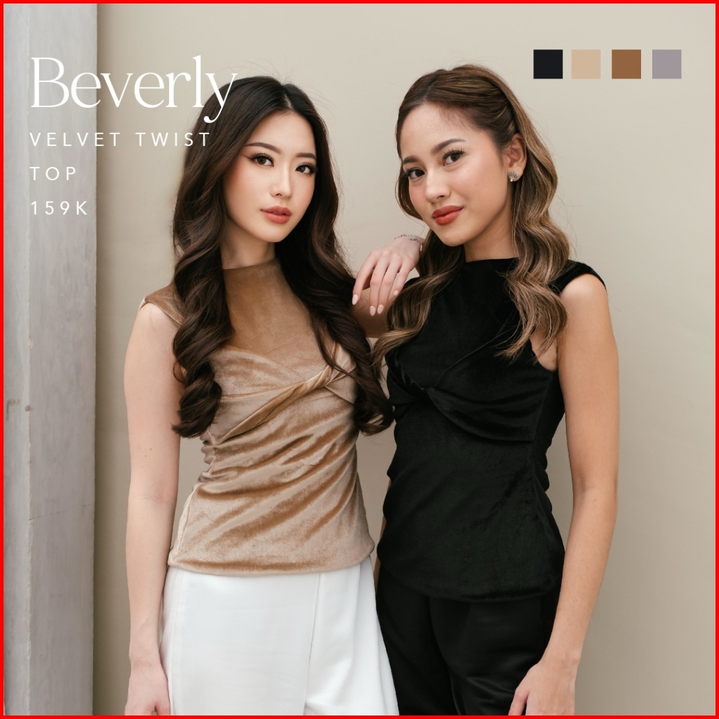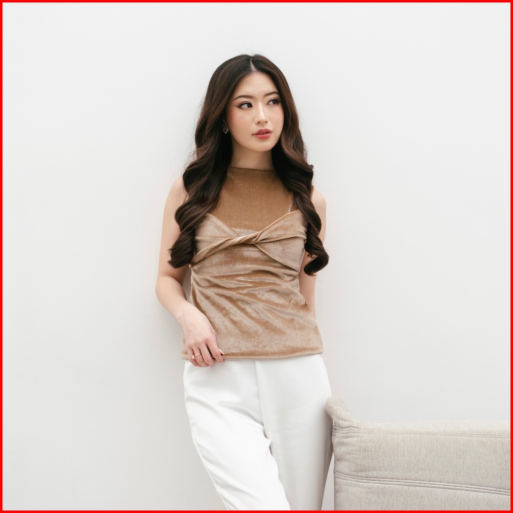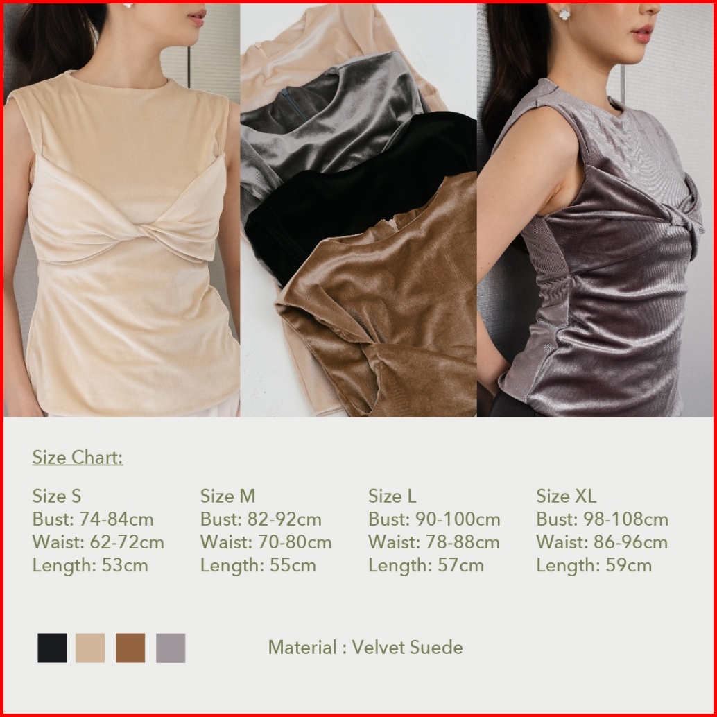 Beverly Velvet Twist Top -- Ocha Wear X Valerie Pola Velvet Suede Top Bow Elegant Top Pakaian Wanita Trendy Tanktop