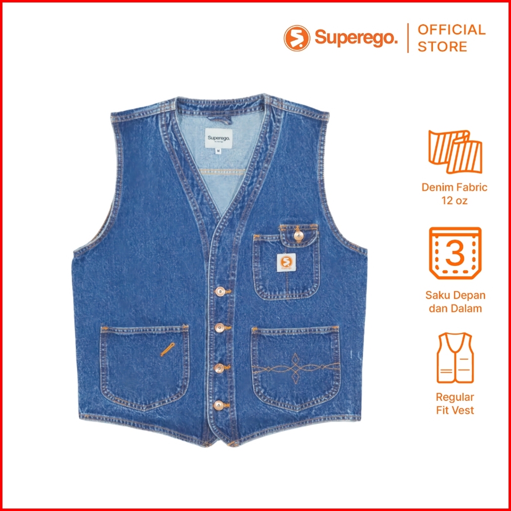 Superego Vest Denim Rompi Pria Size M-xl Regular Fit V-neck Snow Blue Vdw01b