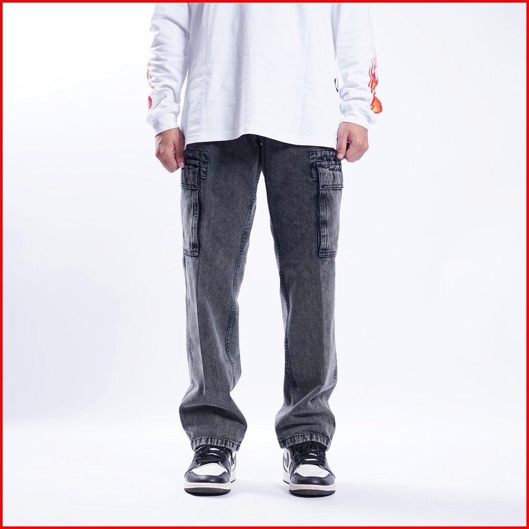 Superego Celana Cargo Pants Jeans Reguler Denim Snow Light Black V2 Scpdw03d