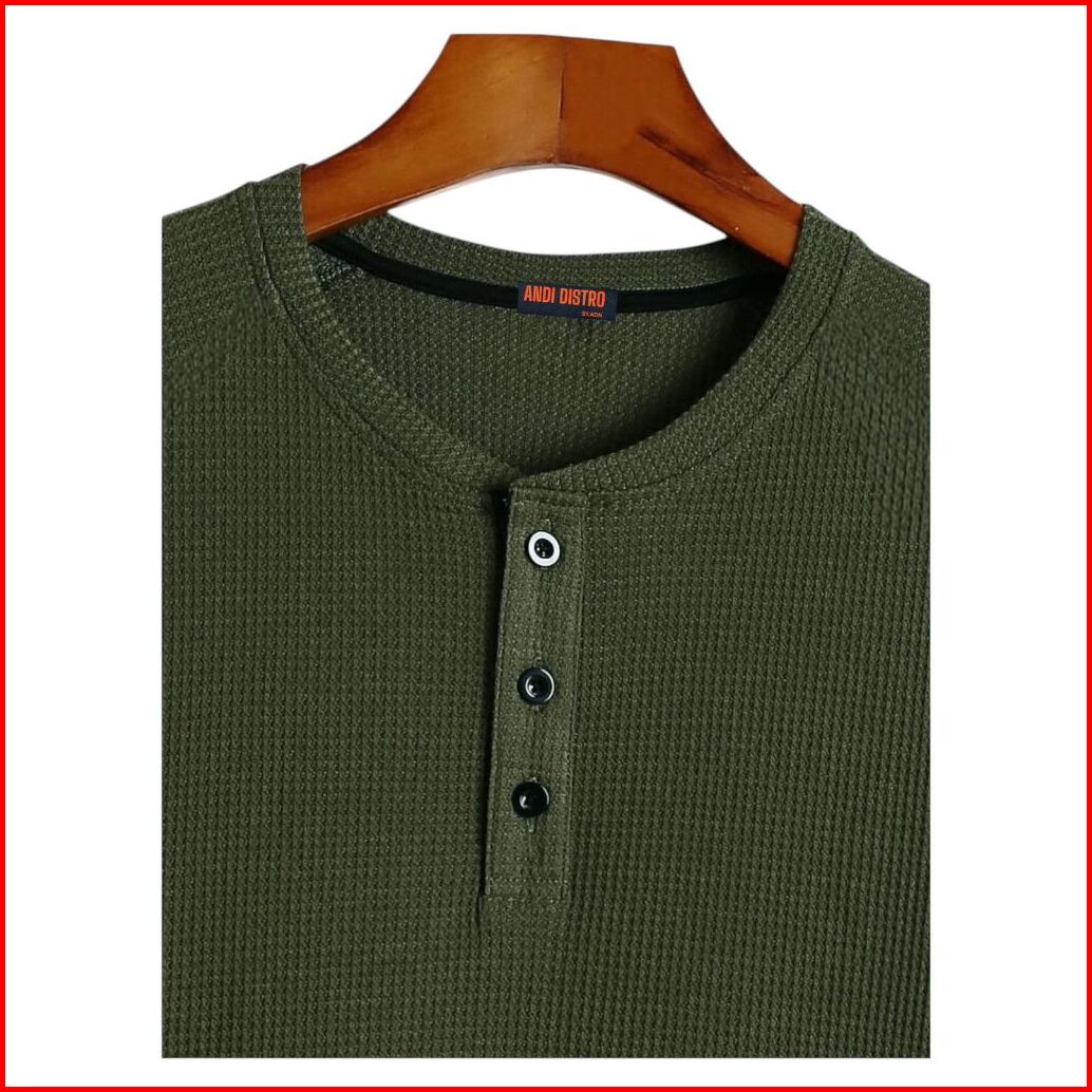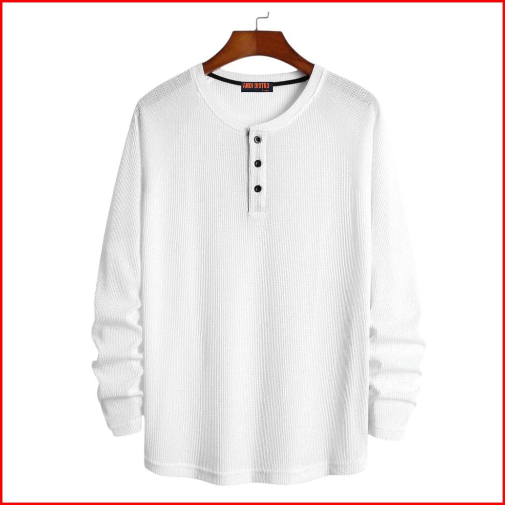Kaos Pria Knit Waffle Kancing Sanghai Pria Lengan Panjang Bahan Waffle Premium