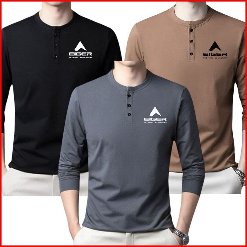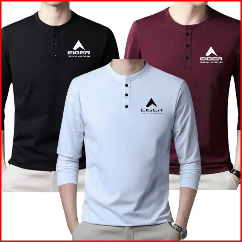 Paket 3 Potong Kaos Kancing Panjang Pria Terbaru Bahan Teri Premium