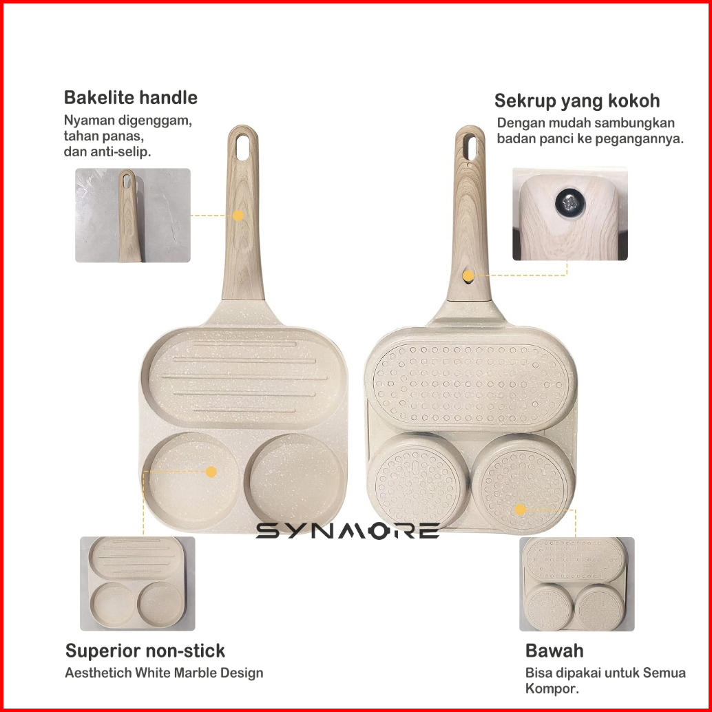 Synmore Wajan Penggorengan Telur 3 Hole Egg Pan Granite Diecast Wajan Telur Anti Lengket