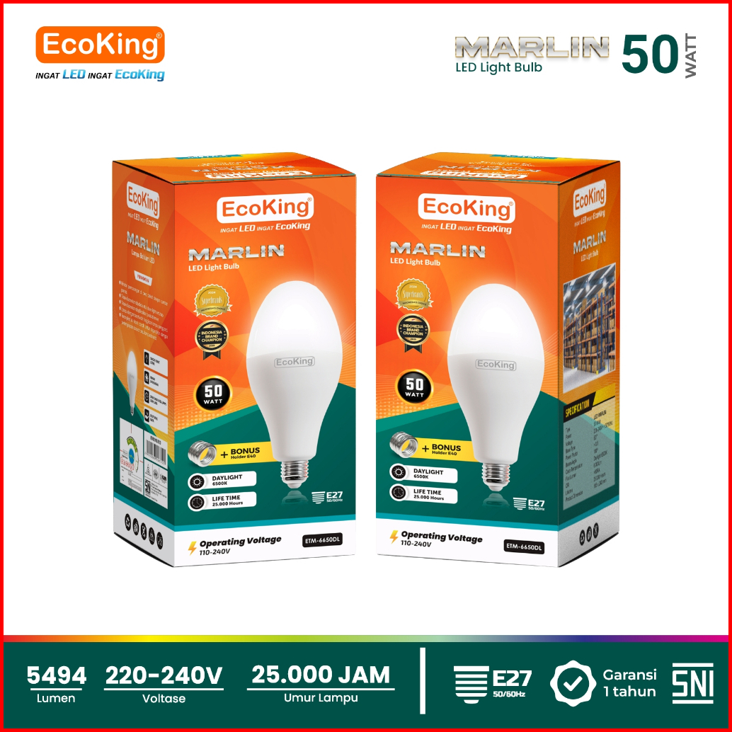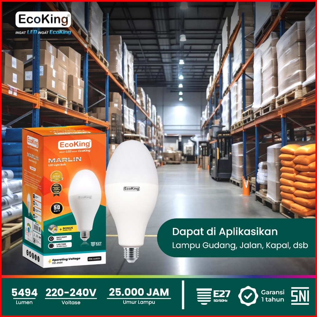 Ecoking Lampu Bohlam Led Non-mercury Marlin 50w Cahaya Putih Etm6650dl