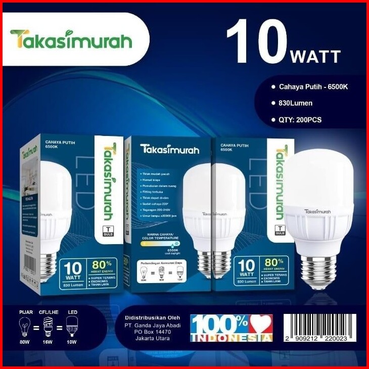 Paket 10pcs Lampu Led Takasimurah T30 Bohlam Bola Capsule Ekonomis Murah Cahaya Putih Sni